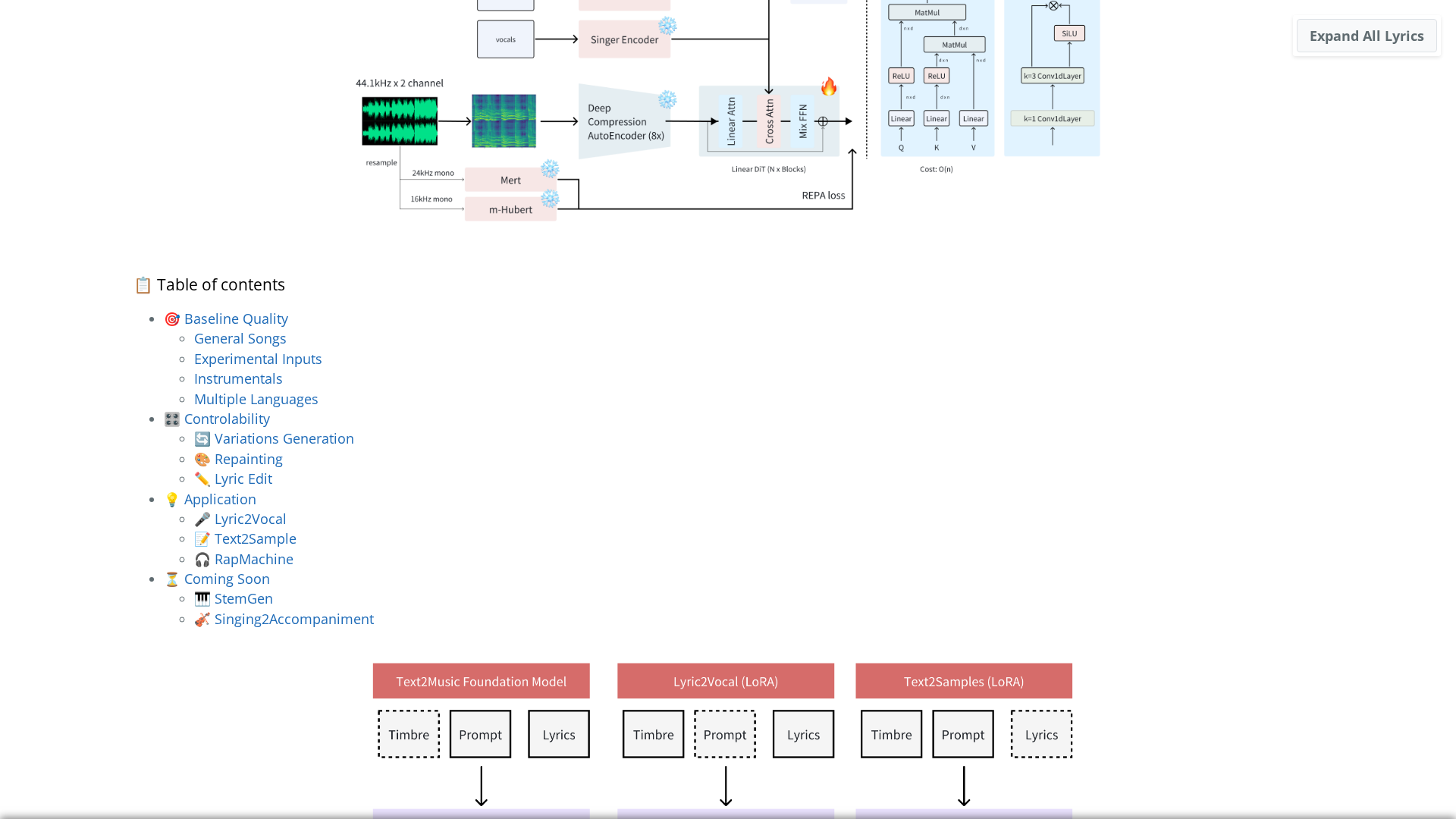 Includes lyric2vocal, singing2accompaniment, and related capabilities.