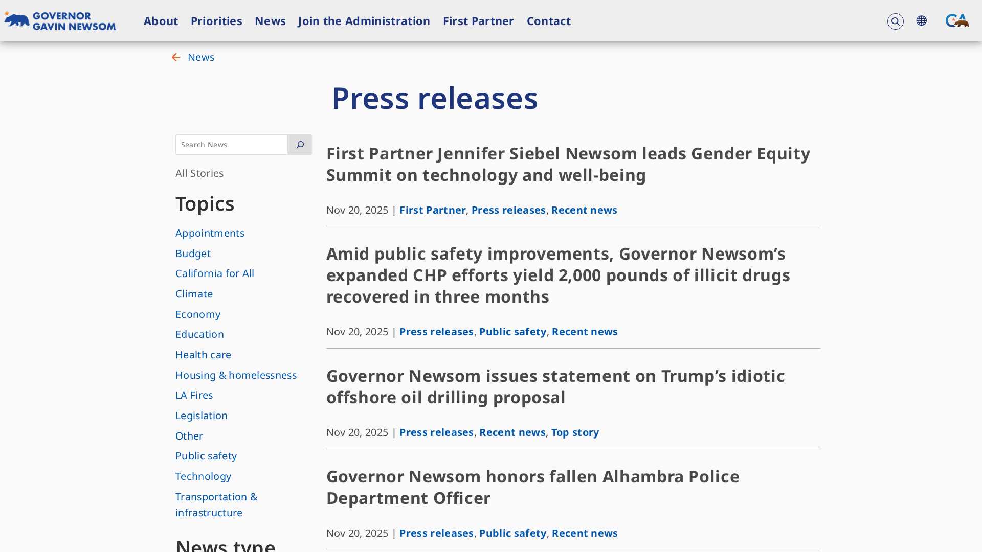 A roundup of Governor Newsom’s recent press releases on storm preparedness, COP30 climate leadership, and education gains.