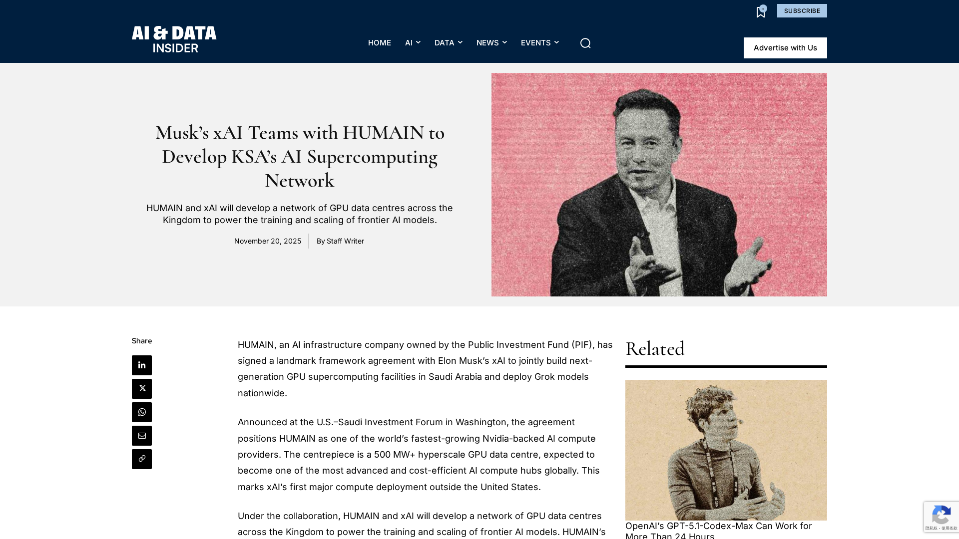 xAI partners with HUMAIN to deploy a nationwide 500+ MW GPU AI supercomputing network in Saudi Arabia.