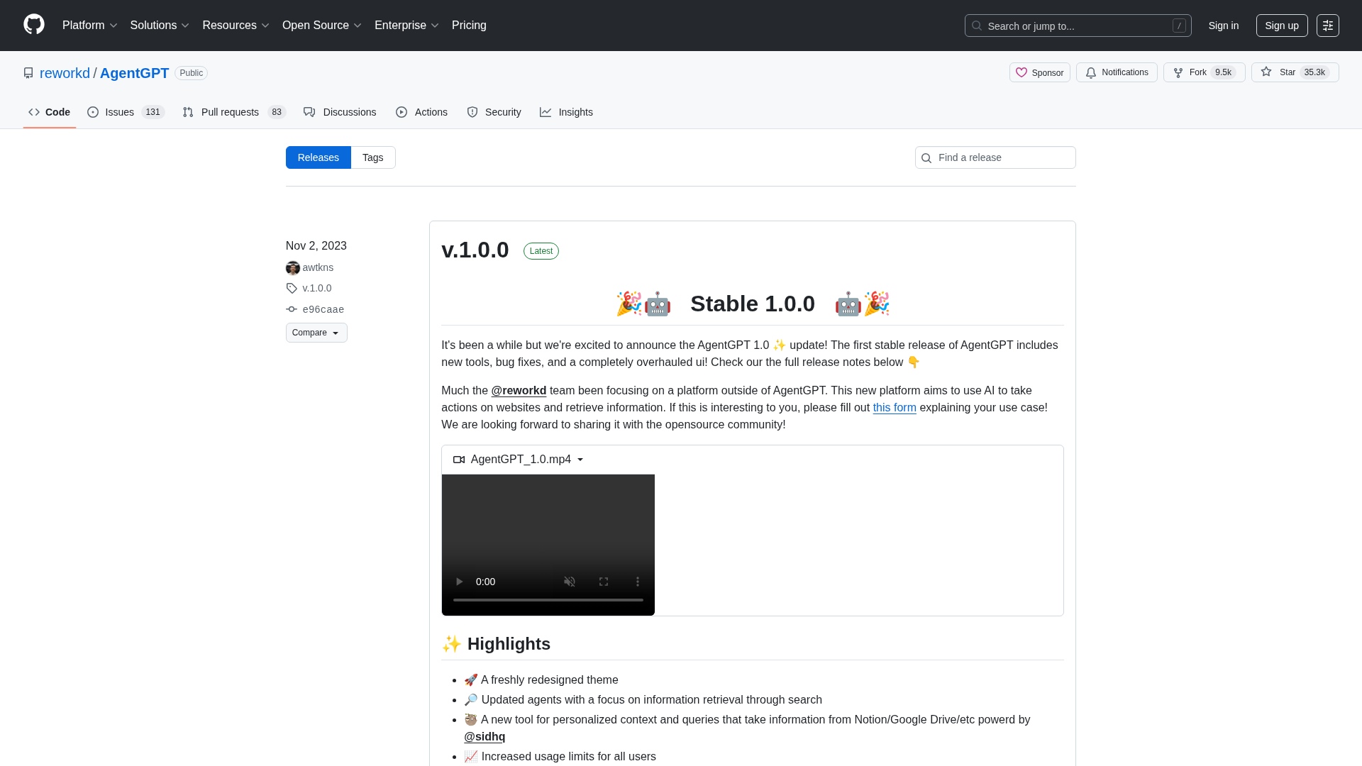 AgentGPT lands its first stable 1.0 release with a redesigned UI, info-retrieval enhancements, and new context tools.