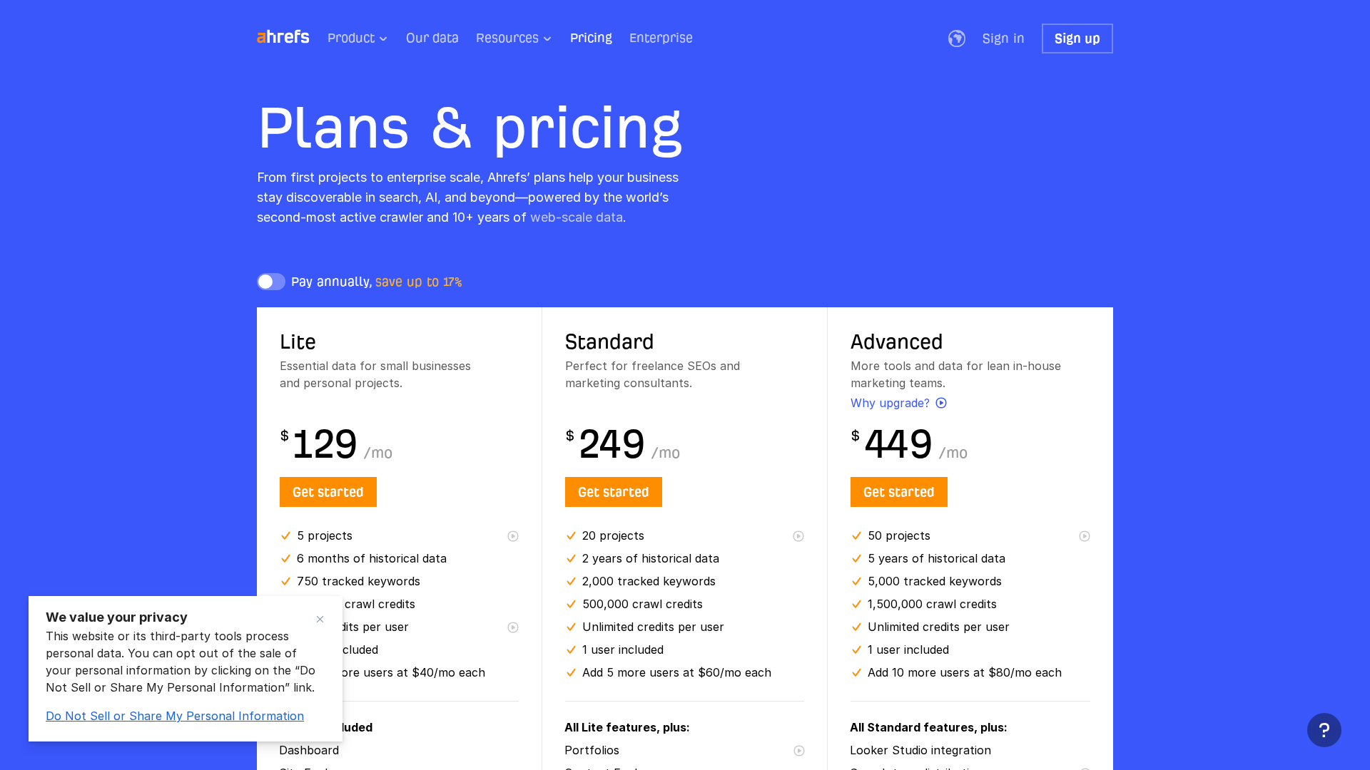 - ✓Comprehensive toolset: Site Explorer, Keywords Explorer, Site Audit, Rank Tracker, Content & Link discovery.