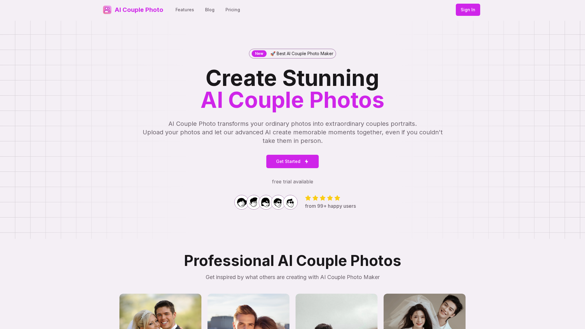 AI Couple Photo is a web-first service that transforms two individual photos (selfies or portraits) into a cohesive, studio-style couple portrait using AI-driven face alignment, style transfer, and scene generation. Users upload two photos, pick from multiple style presets (casual, formal, wedding, seasonal, anime/K-drama, fantasy, etc.), and receive a high-resolution, watermark-free portrait designed to look like a real paired photoshoot. The service emphasizes privacy: uploaded photos are encrypted, processed temporarily, and deleted (uploads up to 30 days; generated outputs retained up to 90 days). Use cases include long-distance couples, engagement or anniversary announcements, social avatars, and creative content for influencers. The product is mobile-friendly and focuses on fast, easy, and customizable portrait generation without manual editing skills.