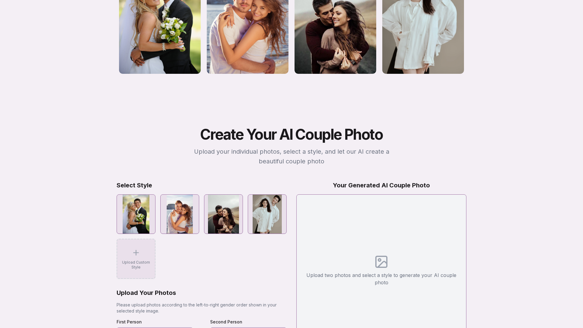 - ✓Easy 4-step workflow (upload two photos, choose style, generate, download)