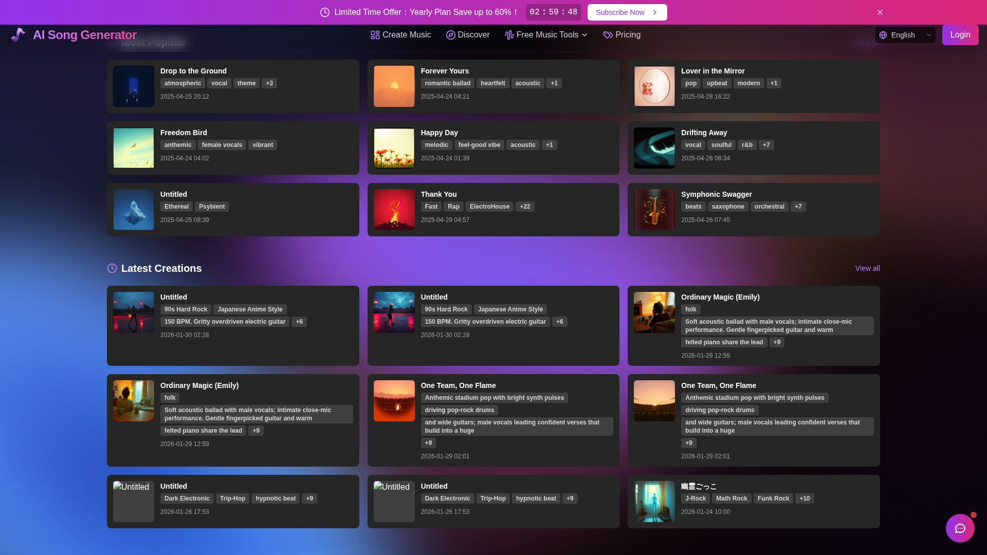- ✓Integrated lyric generator and community discovery for inspiration.