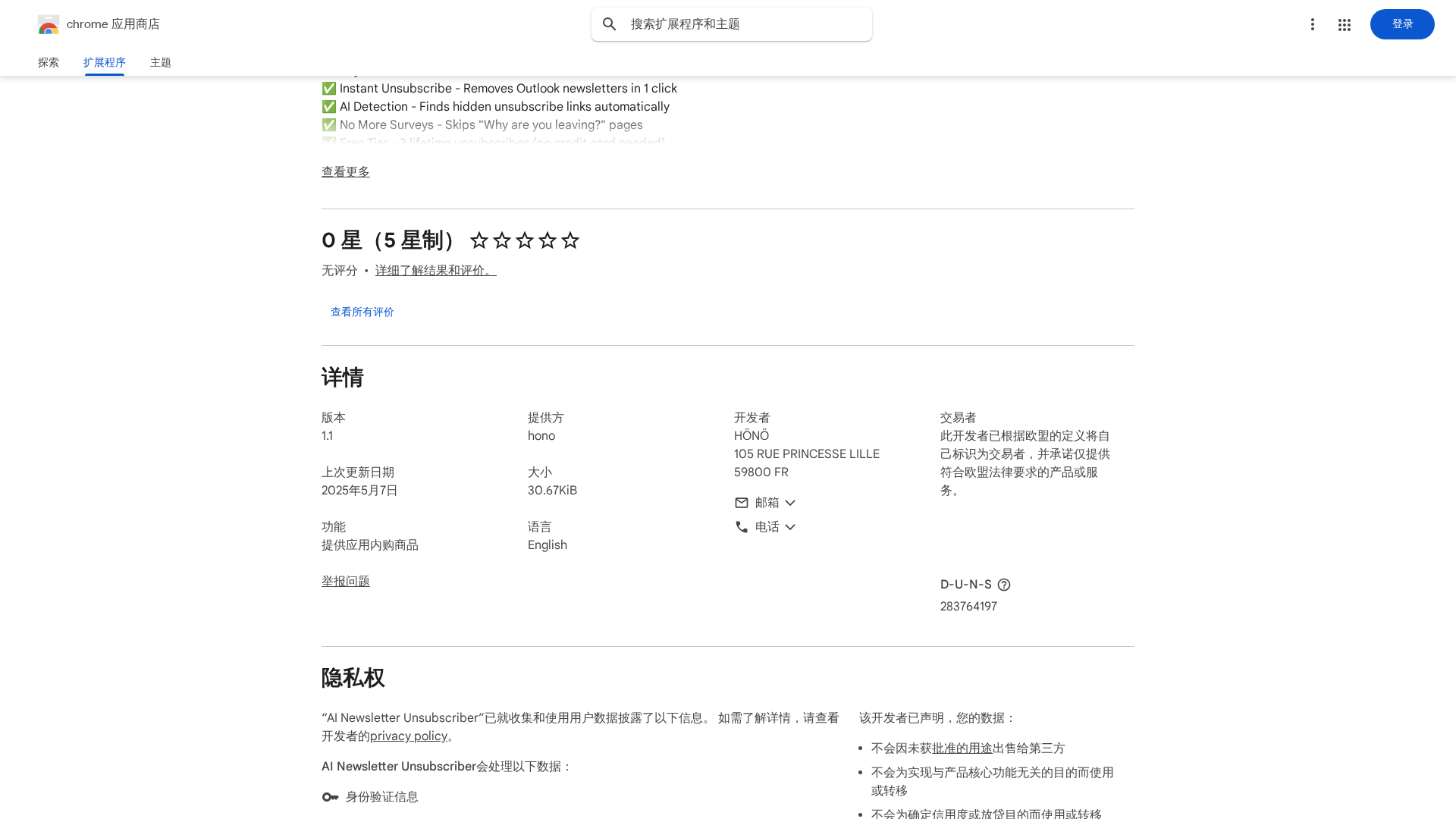AI Newsletter Unsubscriber is a Chrome extension designed to automate unsubscribing from Outlook newsletters and mailing lists. The extension uses AI to detect visible and hidden unsubscribe links, bypasses intermediate "Why are you leaving?" survey pages, and performs one-click, instant unsubscribes across different Outlook newsletter formats. Installation is simple: add the extension to Chrome, open any Outlook newsletter, click the wand/magic icon, and let the AI find and execute the unsubscribe action. The product emphasizes inbox hygiene, time savings (estimates of several minutes saved per unsubscribe), and user privacy--claiming minimal tracking or data collection and providing a privacy policy link on its Chrome Web Store listing.