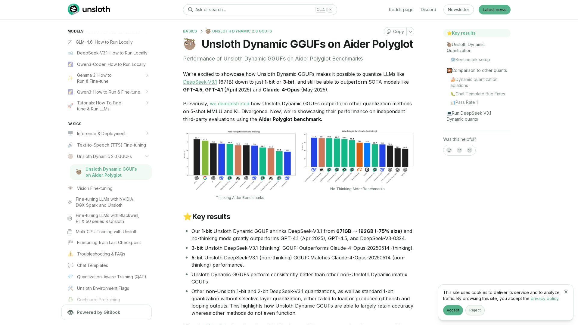 Ultra-quantized DeepSeek-V3.1 (1–3 bits) achieves strong Aider Polyglot performance with Unsloth Dynamic GGUFs.