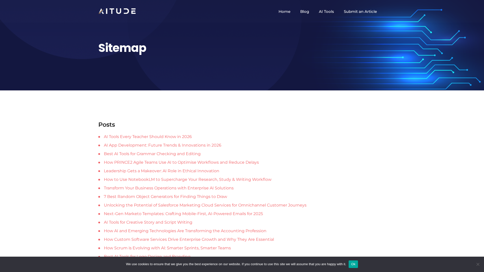 AITUDE’s sitemap offering a vast directory of AI posts and an extensive AI tools catalog for quick discovery.