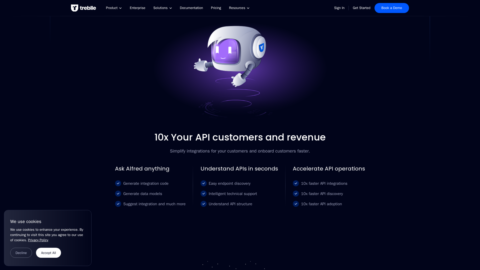 Alfred is Treblle’s AI-powered agent that generates integration code and data models inside your developer portal with just a line of integration and an OpenAPI spec.