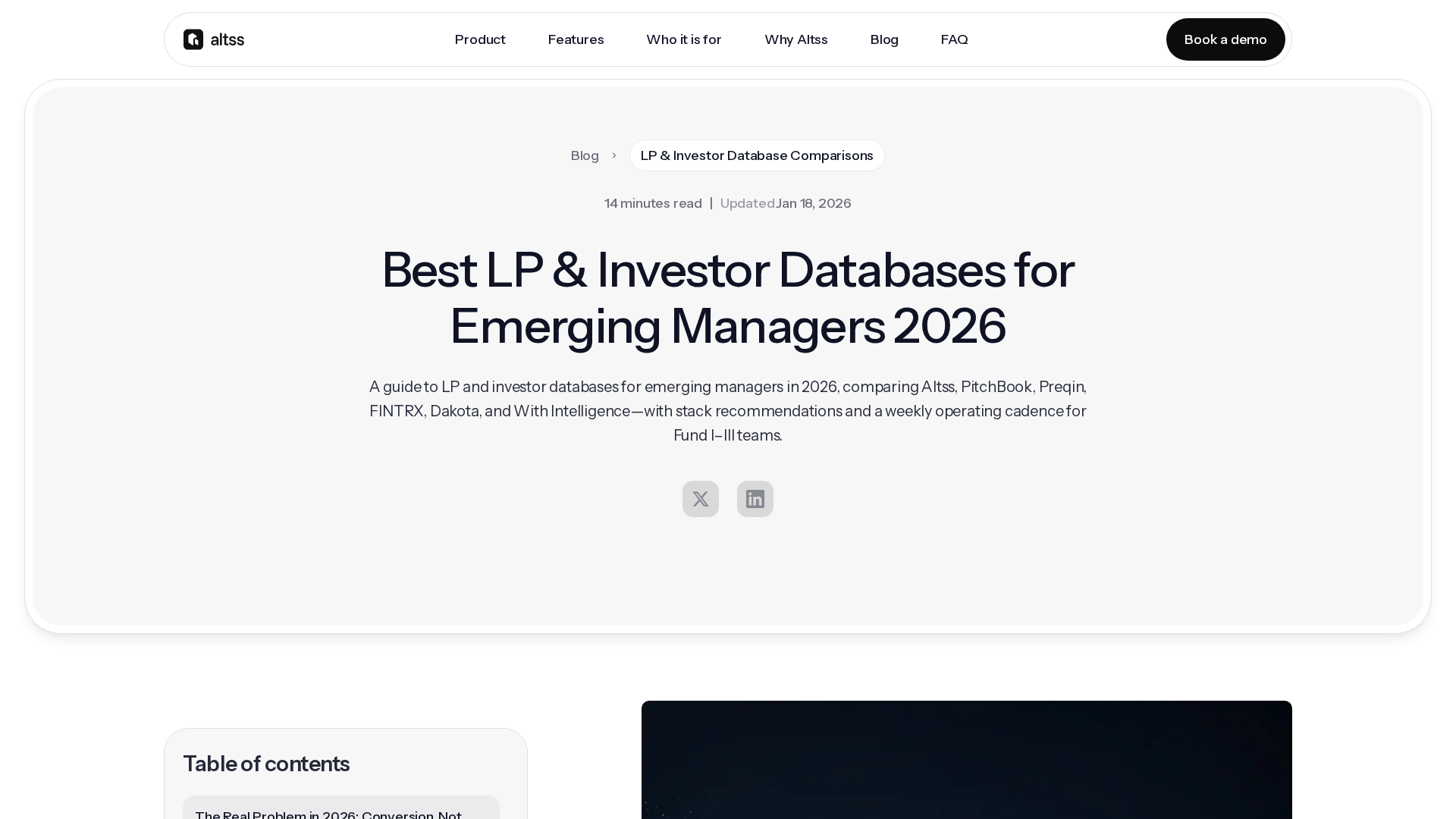 A buyer’s guide comparing Altss, PitchBook, Preqin, FINTRX, Dakota, and With Intelligence for Fund I–III fundraising in 2026.