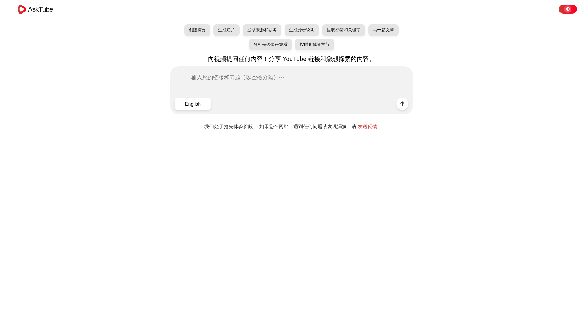 AskTube.Ai is a web-based tool that converts YouTube videos into structured, AI-assisted outputs. Users paste a YouTube link, specify desired outputs, and receive organized results such as summaries, short AI-generated clips, chapters with timestamps, and actionable steps paired with extracted sources, keywords, and hashtags. The workflow centers on prompt-driven interactions and content repurposing, including essays, flashcards, and quizzes. Access is described as early-access, with many features gated behind account sign-in; public pages reveal a cookbook of ready-to-use prompts grouped by function (for example quote extraction, fact-checking, translation for a 12-year-old, study aids, and follow-up questions). Pricing on the public page shows Free and Pro plans with quotas; no annual or one-time pricing is displayed, and there is no public API documentation on the visible pages. Recommended next steps emphasize creating an account to unlock full features, testing cookbook prompts with YouTube inputs, and evaluating higher-volume use via Pro while reviewing terms and privacy once logged in.