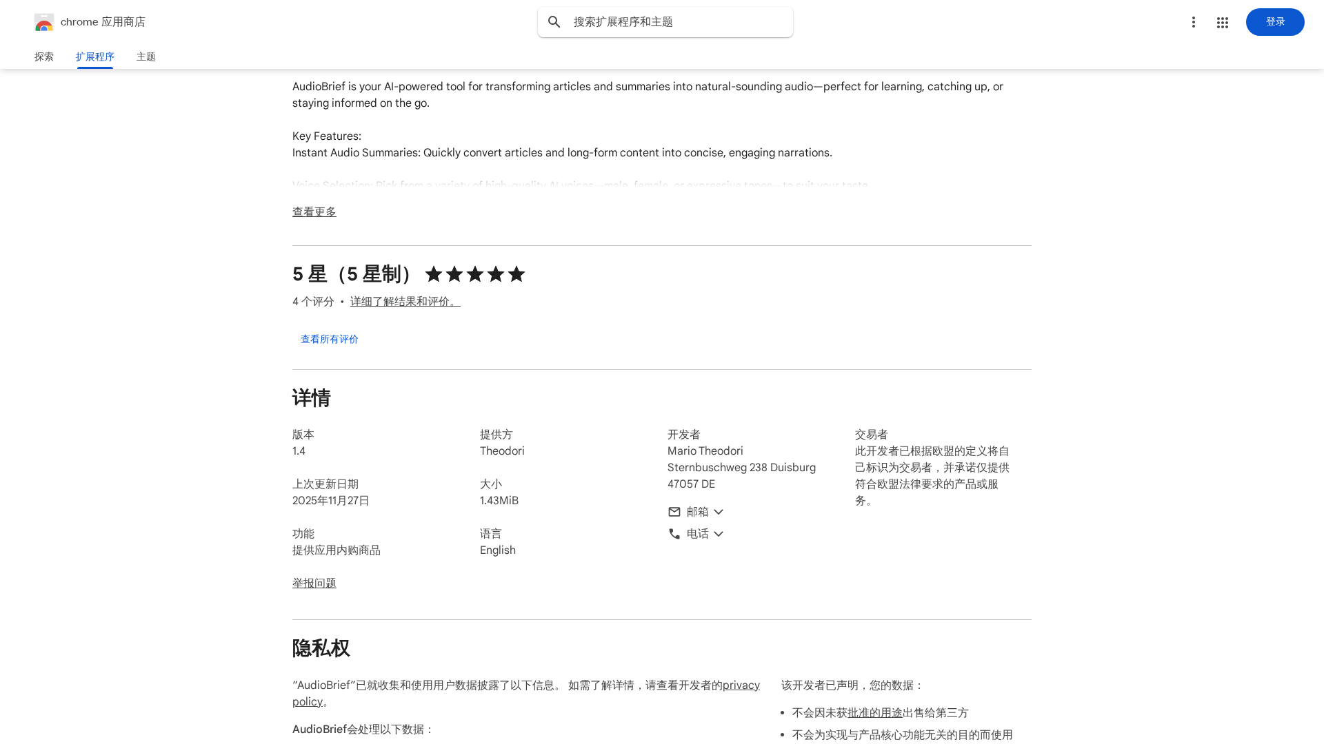 - ✗Potential privacy/data handling concerns typical for TTS/summarization extensions (details not fully visible).