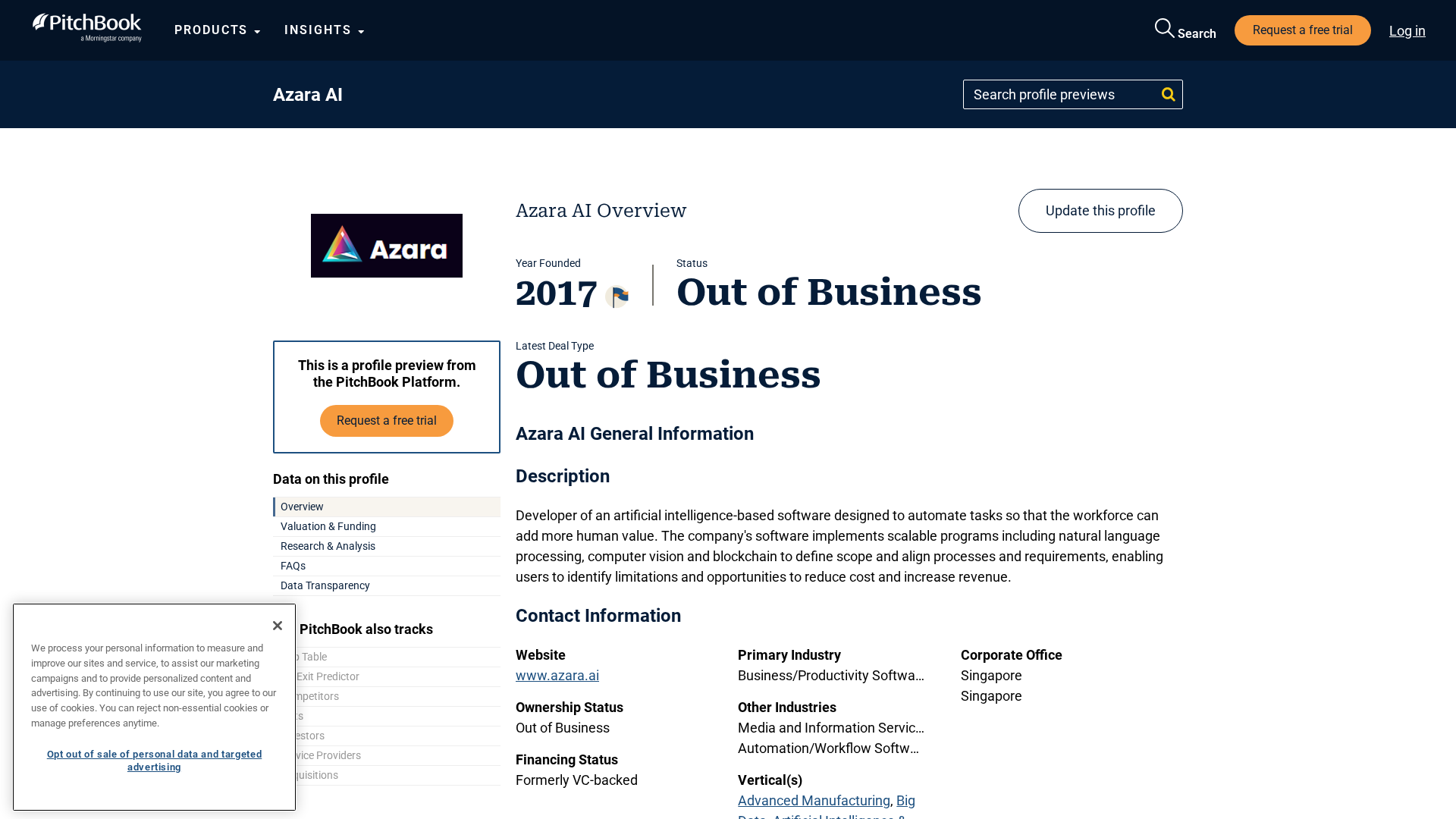 Content blocked; JavaScript required to view PitchBook's company profile online.