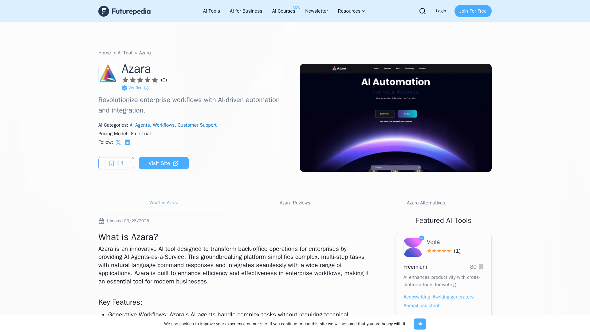 - ✗Main site (azara.ai) is unreachable from the reporter's environment; direct content could not be fetched or verified.