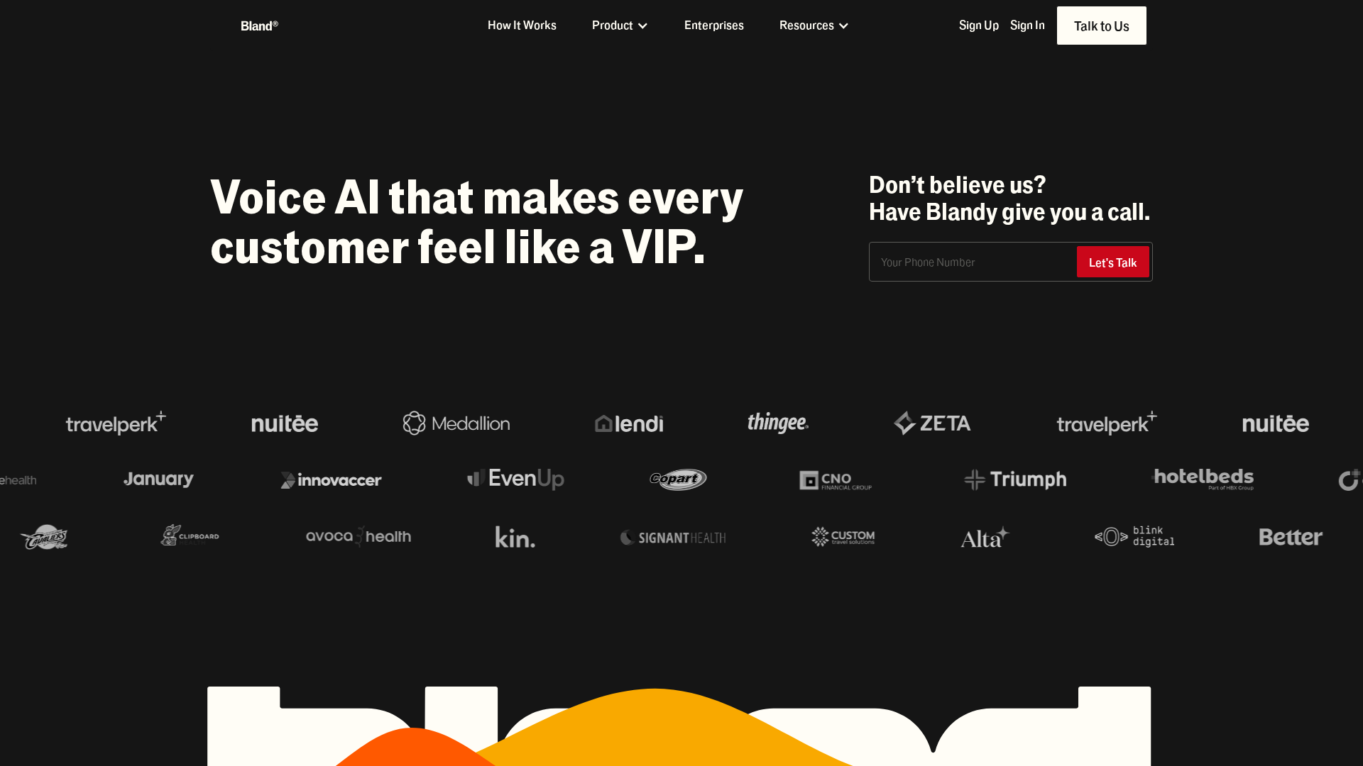Bland emphasizes very high concurrency (marketing reference to up to ~1M concurrent calls).