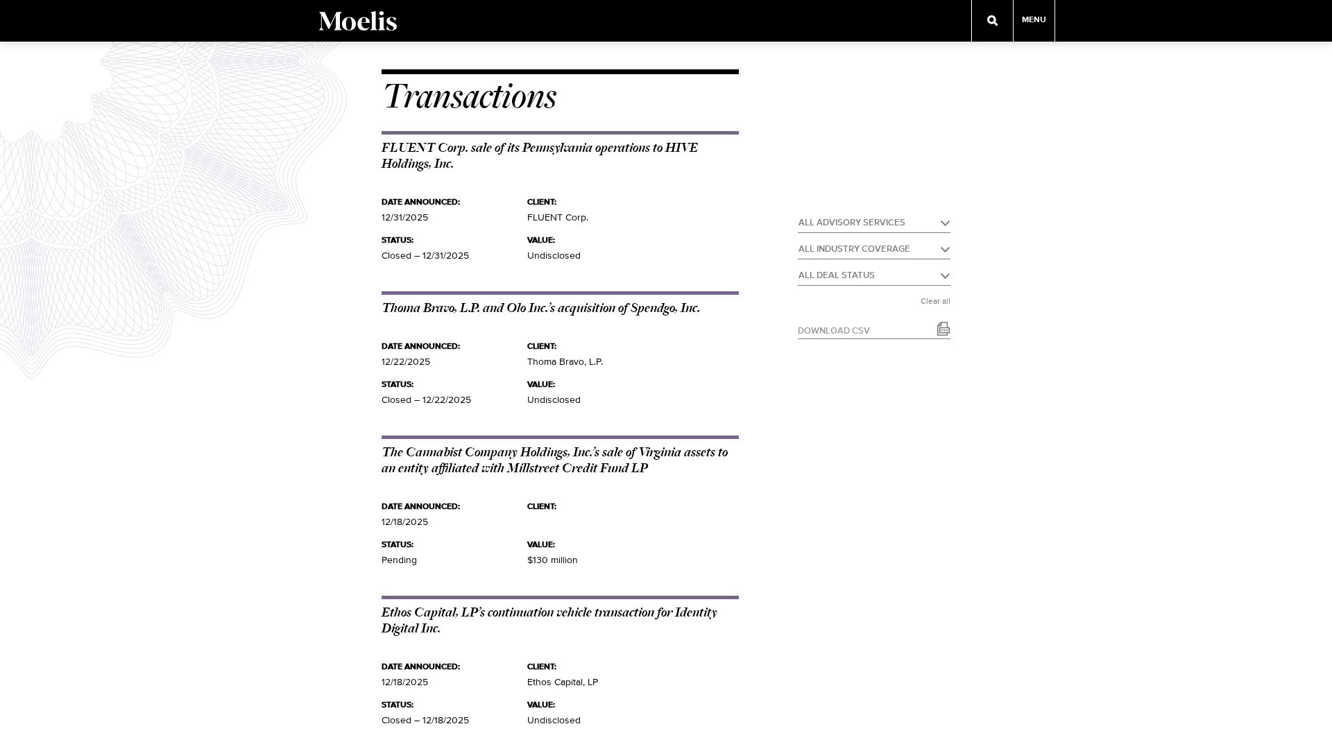 Moelis & Company's late-2025 deals showcase M&A and financing across tech, energy, and media sectors.