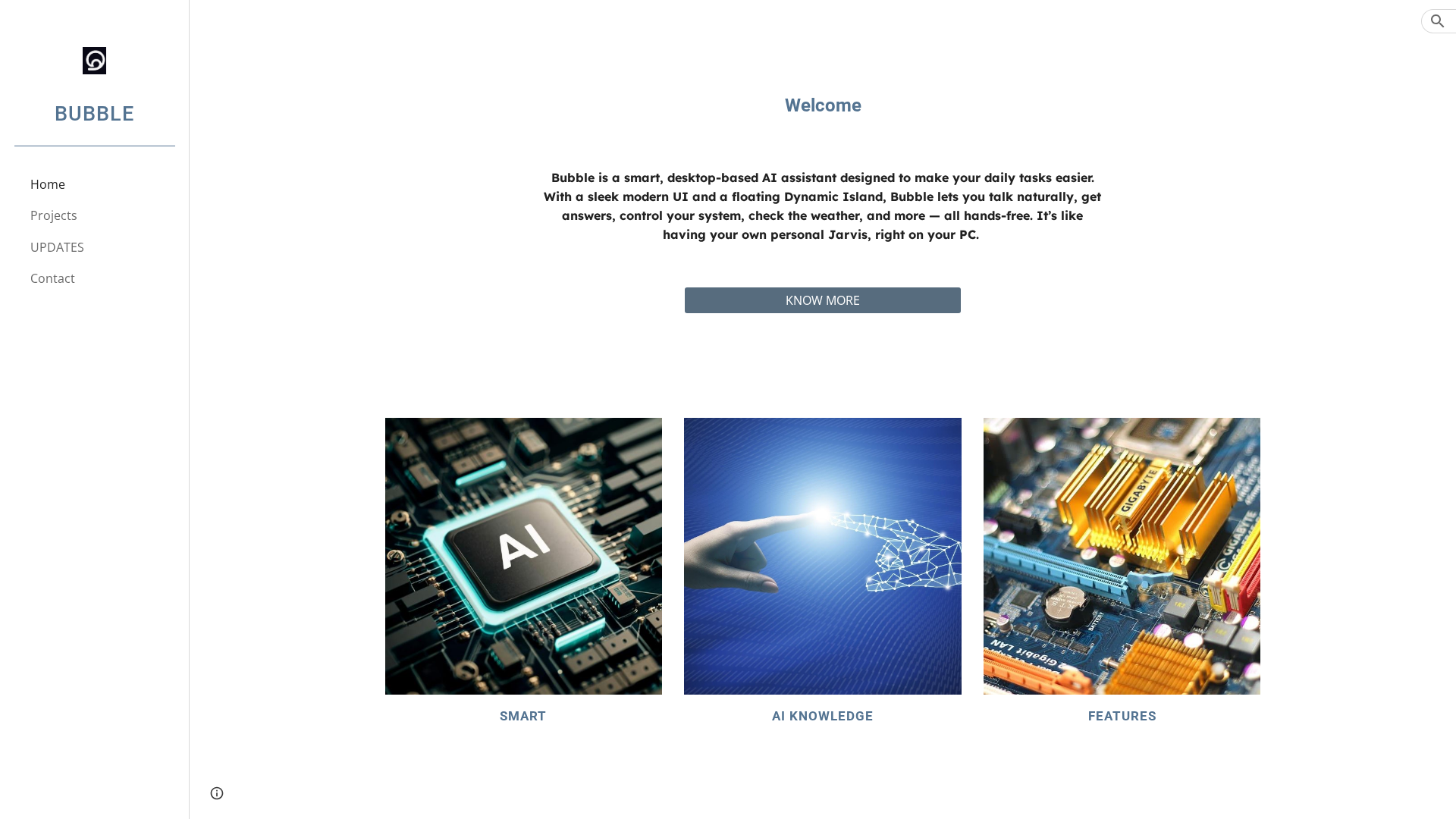 Bubble is presented as a desktop-based, hands-free AI assistant designed to run on users' PCs and provide natural-language voice interaction for everyday tasks. The marketing emphasizes a floating Dynamic Island-style interface on the desktop that offers continuous, unobtrusive presence while you work. Bubble claims it can answer questions, control system functions, report real-time updates such as weather, and execute voice-driven actions without typing. The site positions Bubble as a Jarvis-like personal assistant focused on speed, convenience, and integration into daily workflows. Note: the site currently lacks detailed technical specifications, integrations, or download links on supplementary pages.