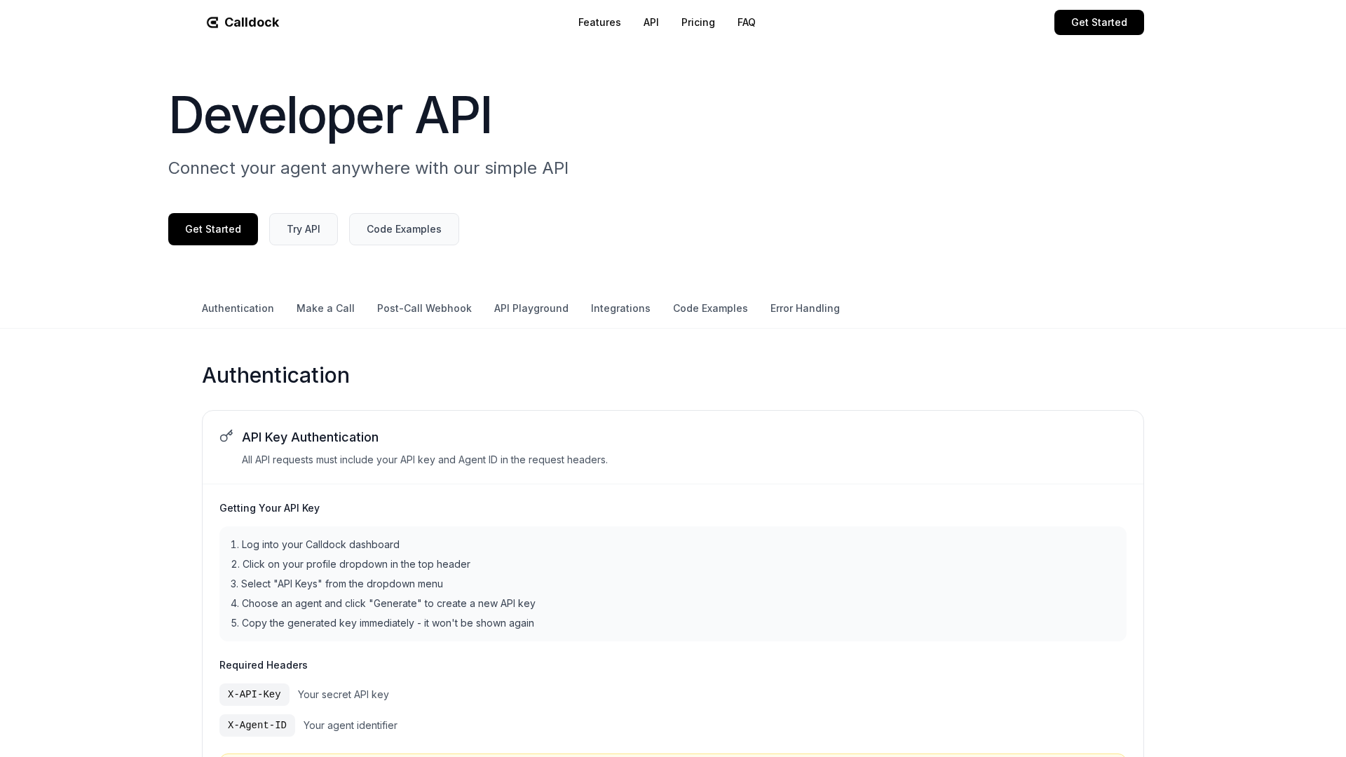 Learn to authenticate, trigger outbound calls, handle post-call webhooks, and build integrations with Calldock API.