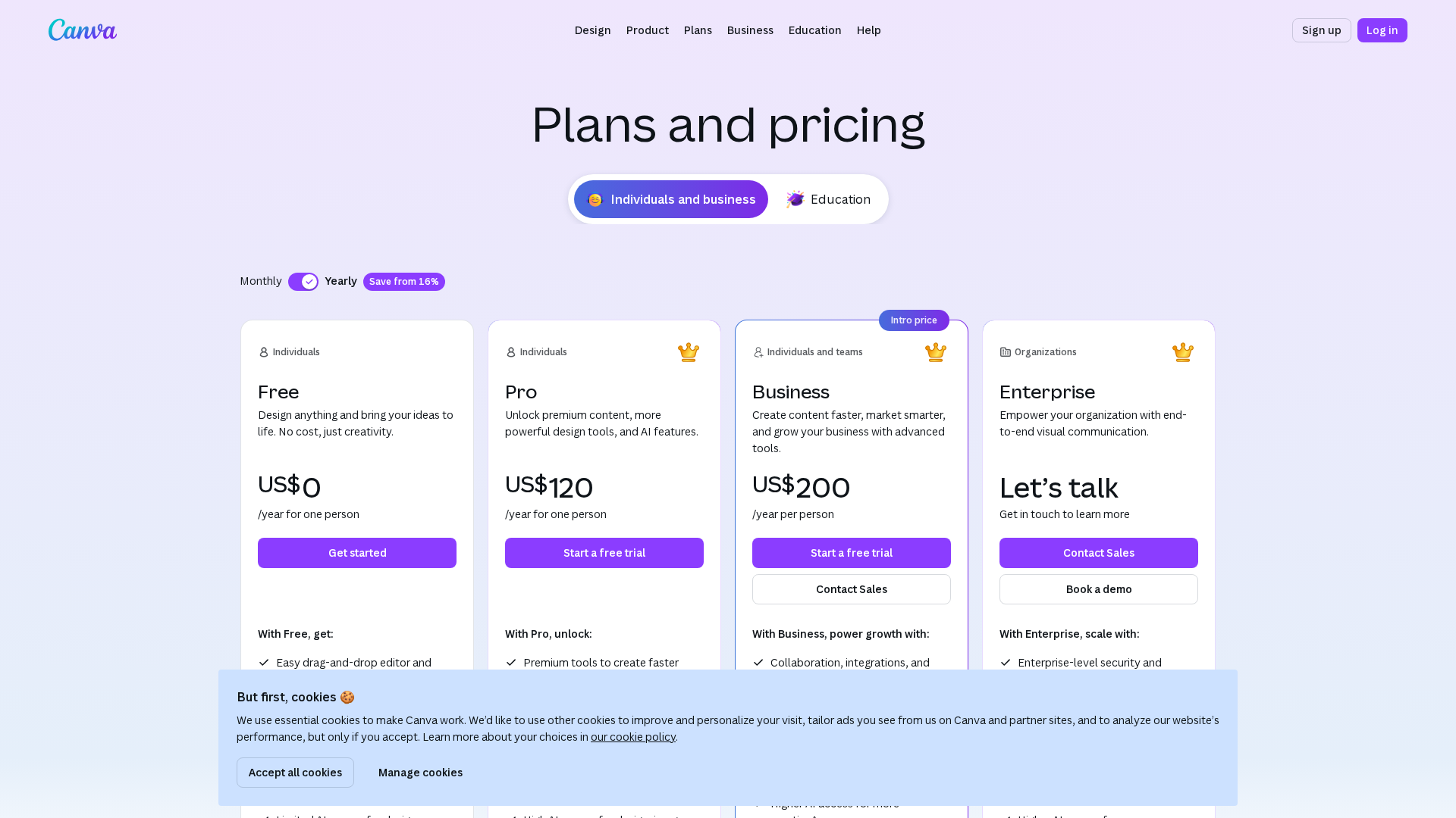 Higher-tier plans add admin, collaboration, and scale features appropriate for organizations; consult Canva pricing for exact plan details.