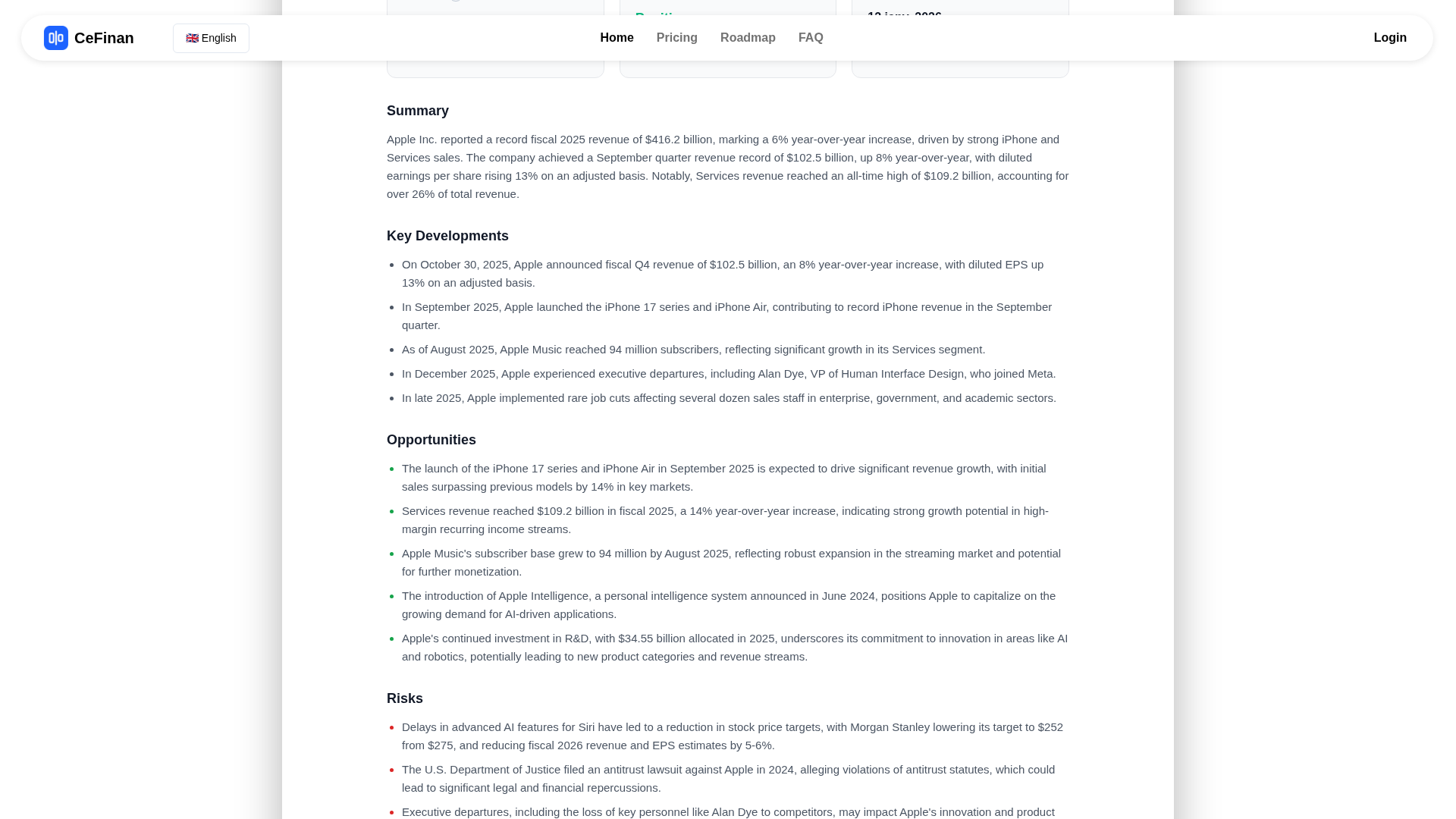CeFinan is an AI-powered platform that translates market data into accessible, educational analysis for retail investors and beginners.