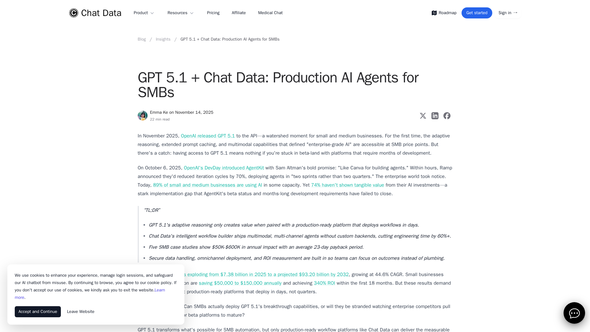 Production-ready GPT-5.1 AI workflows for SMBs deliver ROI in weeks, not months, with Chat Data’s unified platform.
