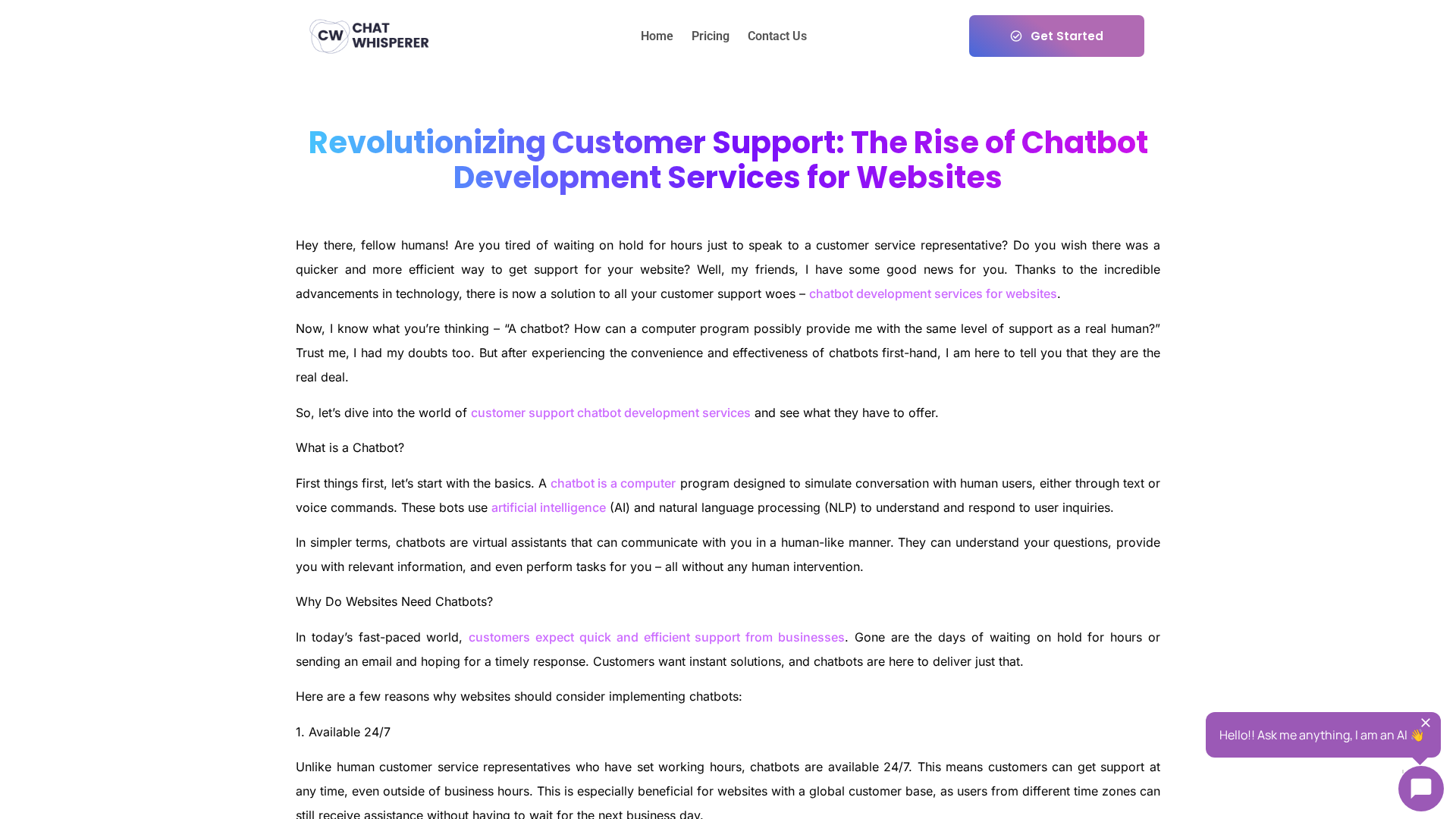 Explains how website chatbot development services boost support with 24/7 availability, fast responses, and end-to-end implementation.