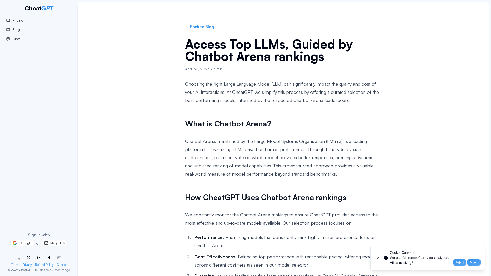 CheatGPT curates top-performing LLMs using Chatbot Arena rankings to help you pick powerful, cost-efficient models.
