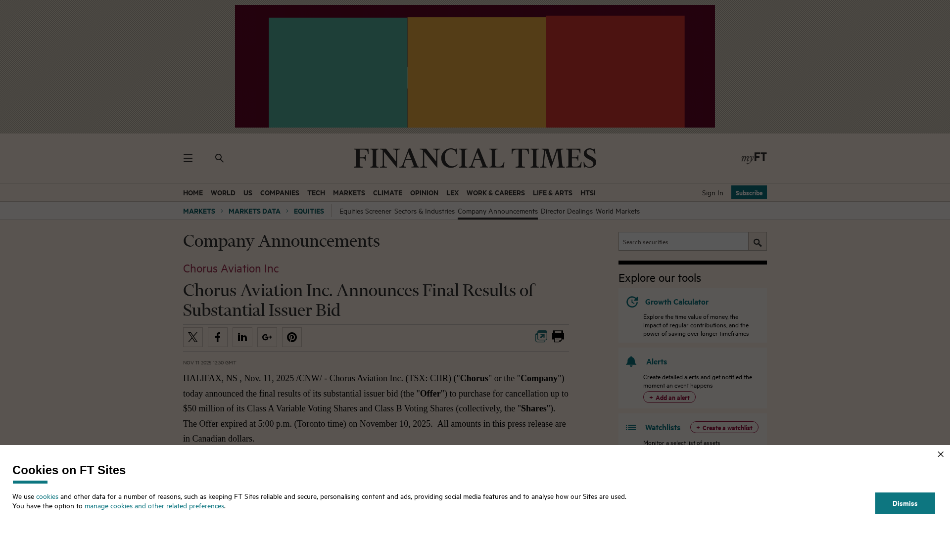 Chorus Aviation reports final results of its $50M share repurchase, buying 2.06M shares at $24.25 amid an oversubscribed offer.