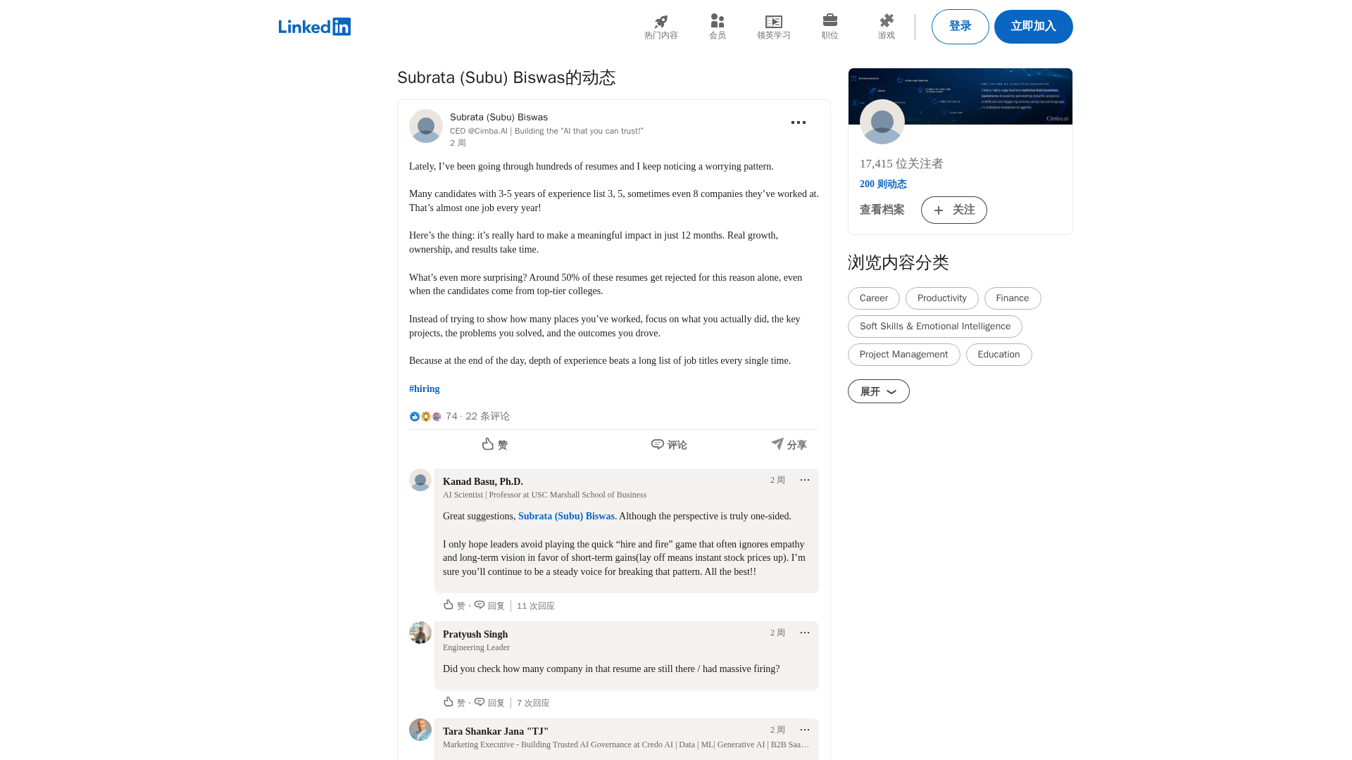 Subrata Biswas argues that resumes should emphasize impact and depth over frequent job-hopping.