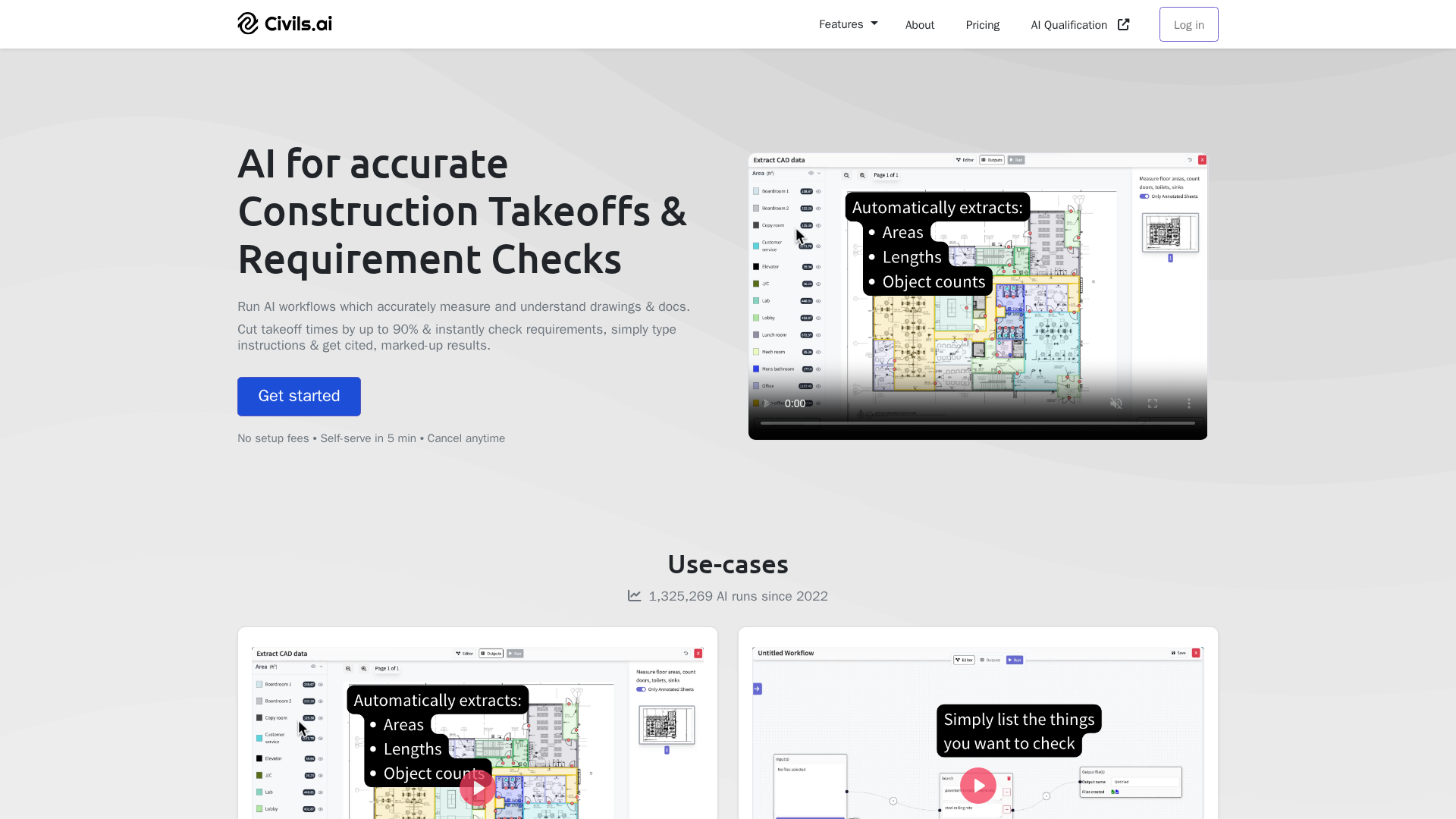 AI-powered quantity takeoffs and data extraction from PDFs for construction, with QA review and export to Excel and annotated PDFs.