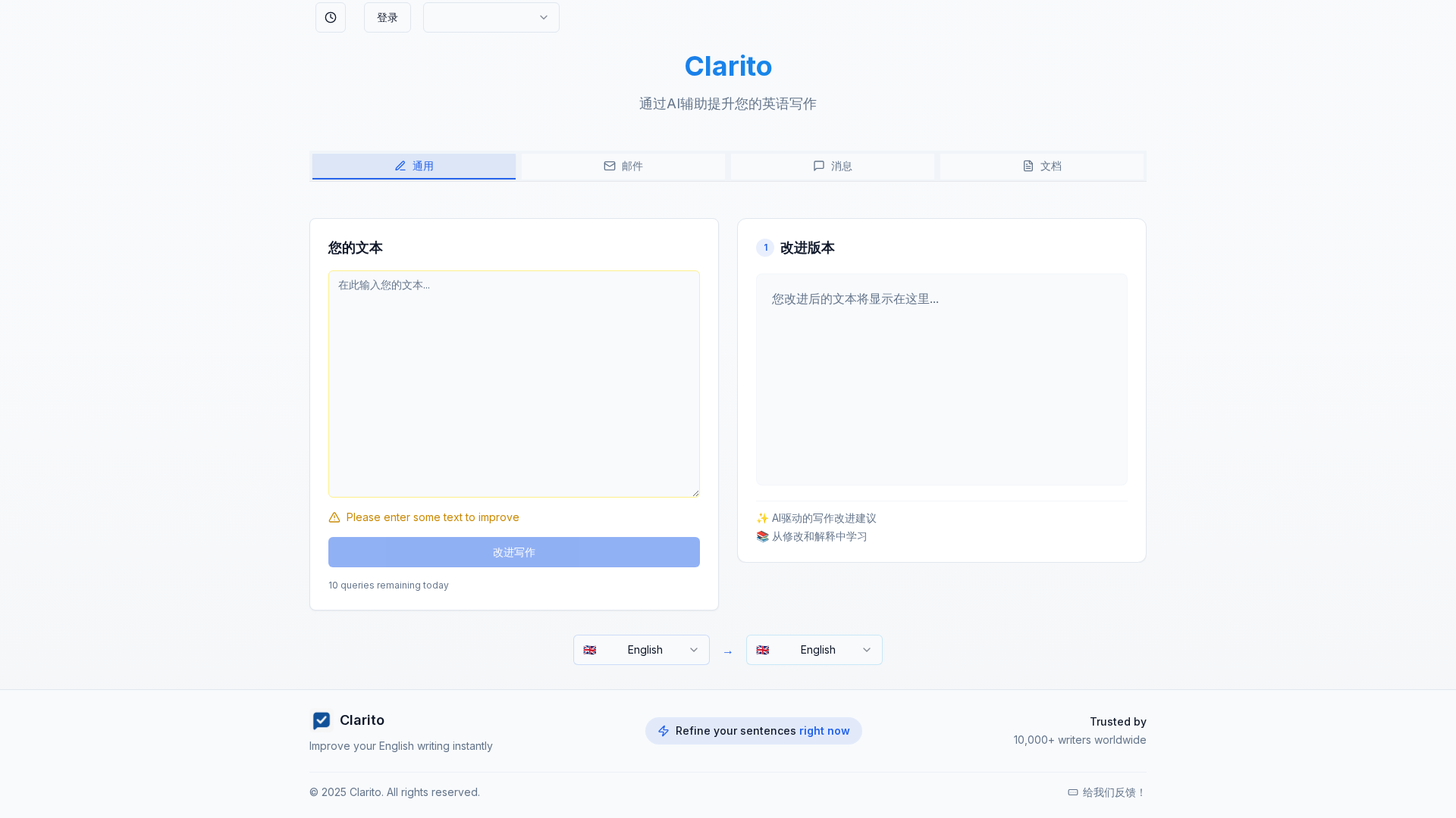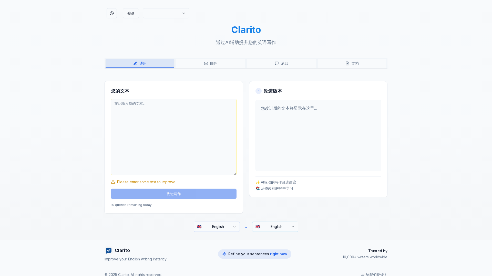Clarito offers an English writing coach service backed by a global network of 10,000+ writers to help you improve instantly.