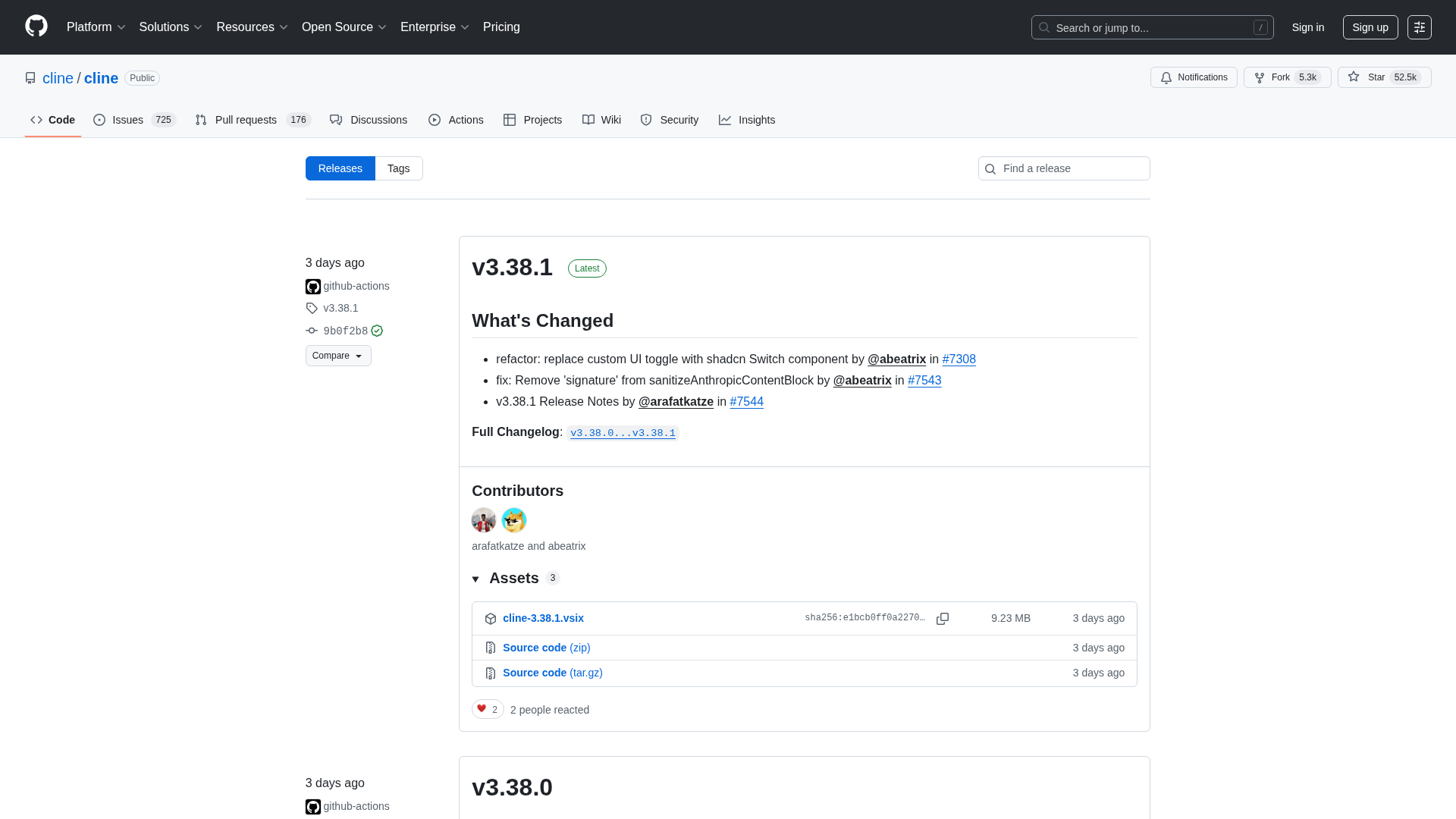 Release notes for cline/cline v3.37.x, detailing hooks fixes, new models, onboarding improvements, and remote-config enhancements.