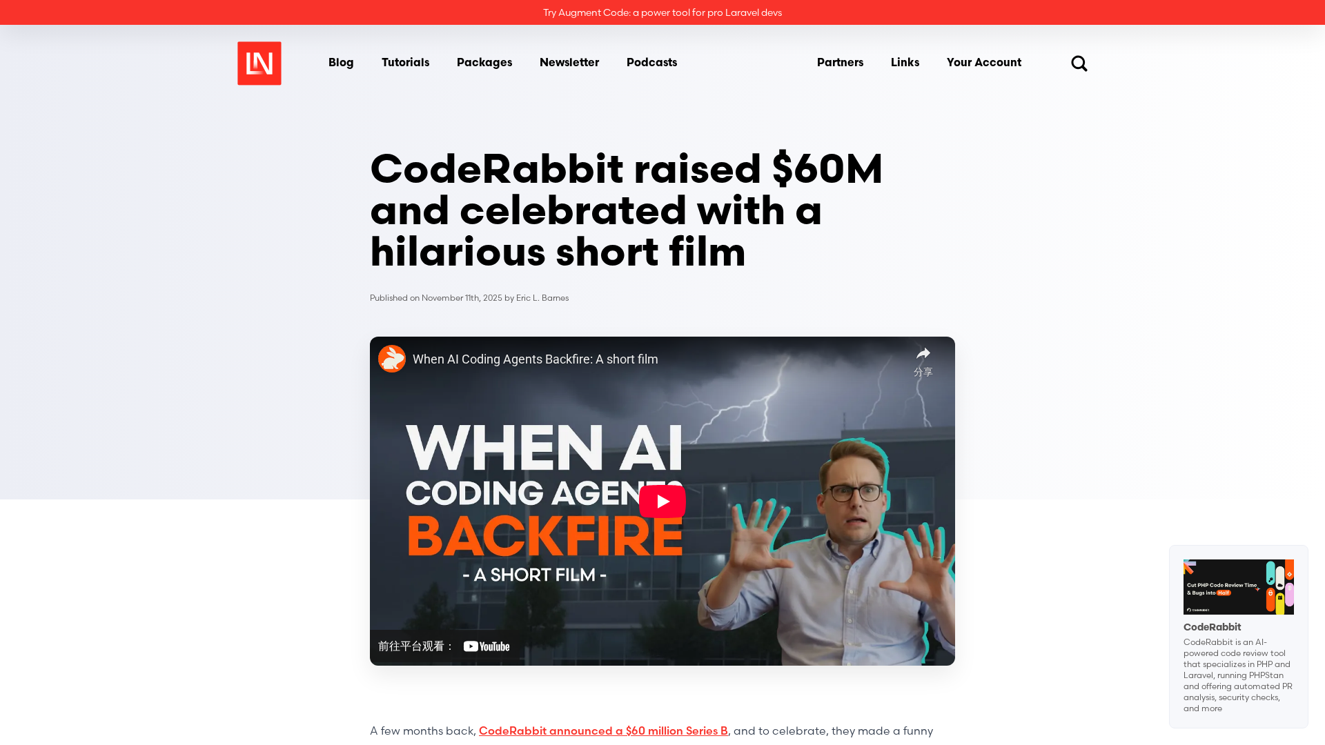 Laravel News reports CodeRabbit's $60M Series B and a funny video underscoring AI-driven PR backlogs in code reviews.