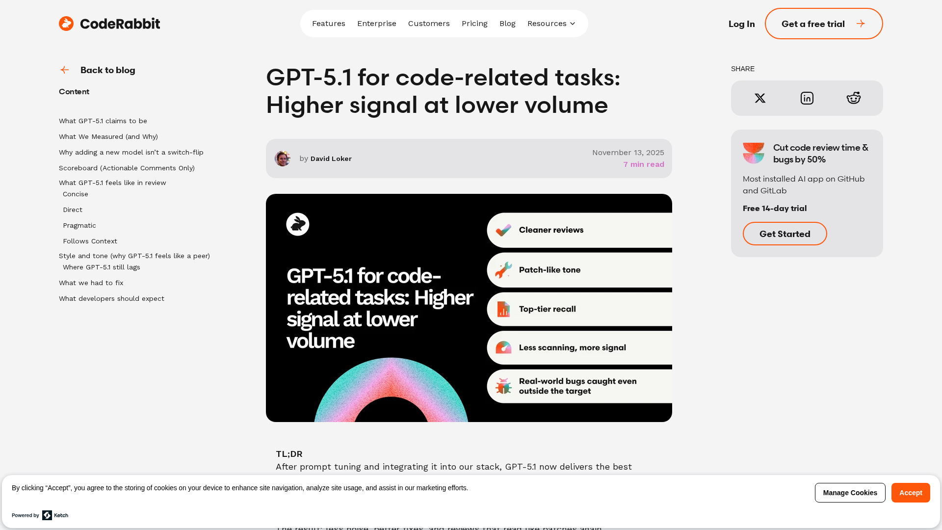 GPT-5.1 for code tasks delivers higher precision and cleaner feedback with lower volume of comments.
