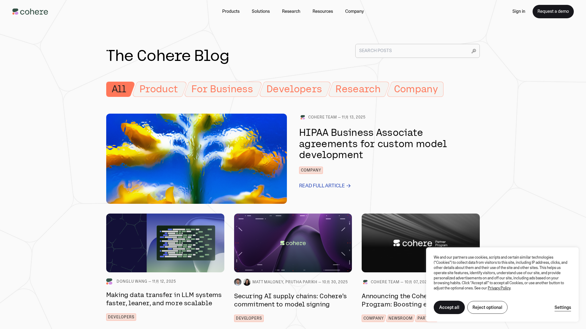 Cohere's blog offers AI news, insights, and innovation, plus a demo of a secure, private AI platform to boost business productivity.