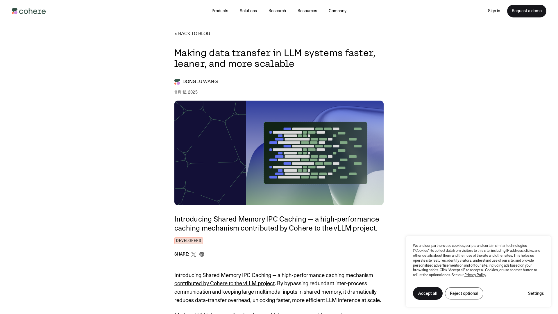 Cohere introduces Shared Memory IPC Caching to speed up data transfer in LLM systems via vLLM.