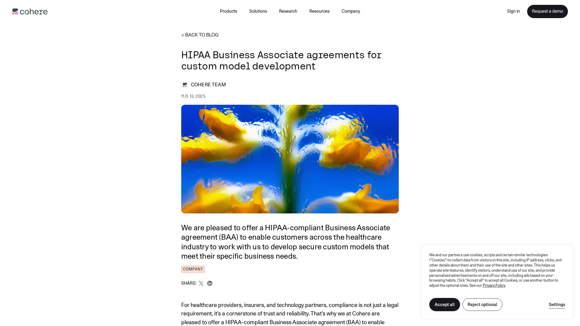 Cohere announces a HIPAA-compliant BAA to enable secure custom AI model development for healthcare clients.
