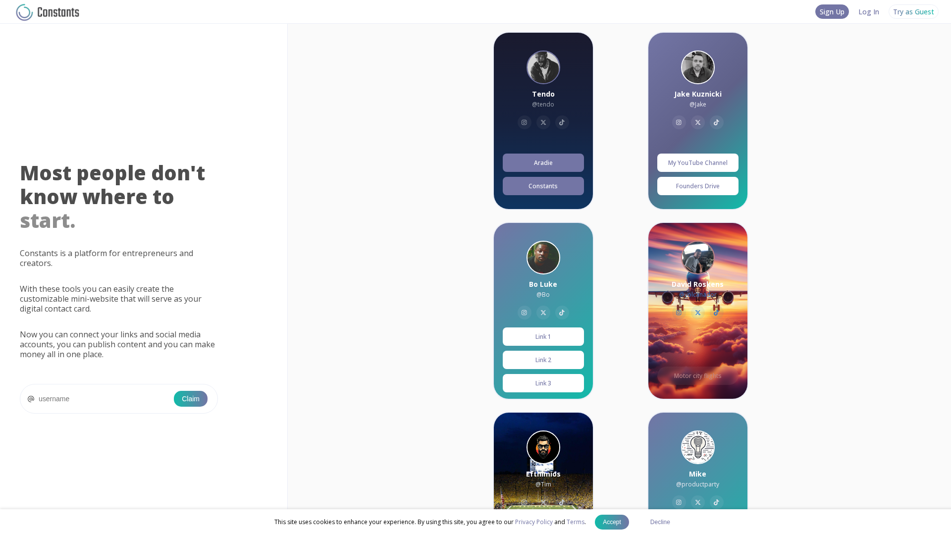 Constants is a creator-first platform that helps individuals launch a compact personal website ("mini site") and monetize their expertise quickly. Creators can publish digital products (courses, ebooks, templates), offer paid memberships, schedule 1:1 bookings and webinars, and host community spaces all from a single link. The platform emphasizes speed and ease-of-use (advertising setup in minutes) and includes AI-powered tools—branded as Muse AI and AI Assistants—to help with content creation, summaries, prompts, and personalized automation. A freemium model allows creators to begin for free and upgrade to Premium for advanced AI capabilities and a verified creator badge.