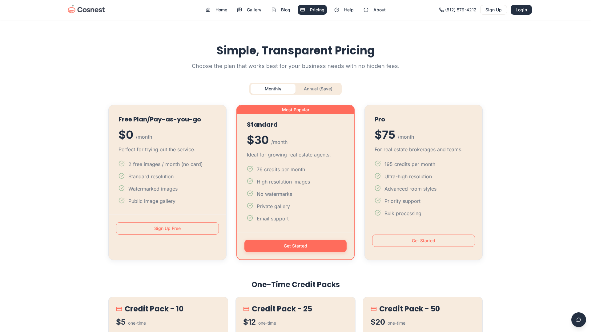 Pro — 195 credits / month; ultra-high resolution; advanced room styles; priority support; bulk processing (for brokerages/teams).