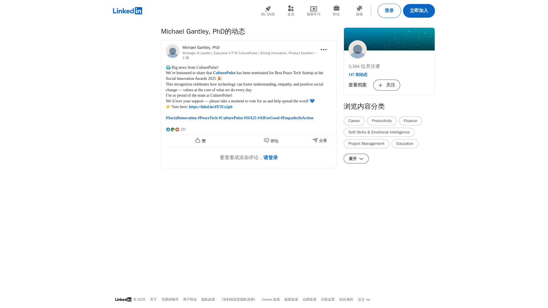 CulturePulse earns a nomination for Best Peace Tech Startup at the 2025 Social Innovation Awards and calls for votes to support peace-tech impact.