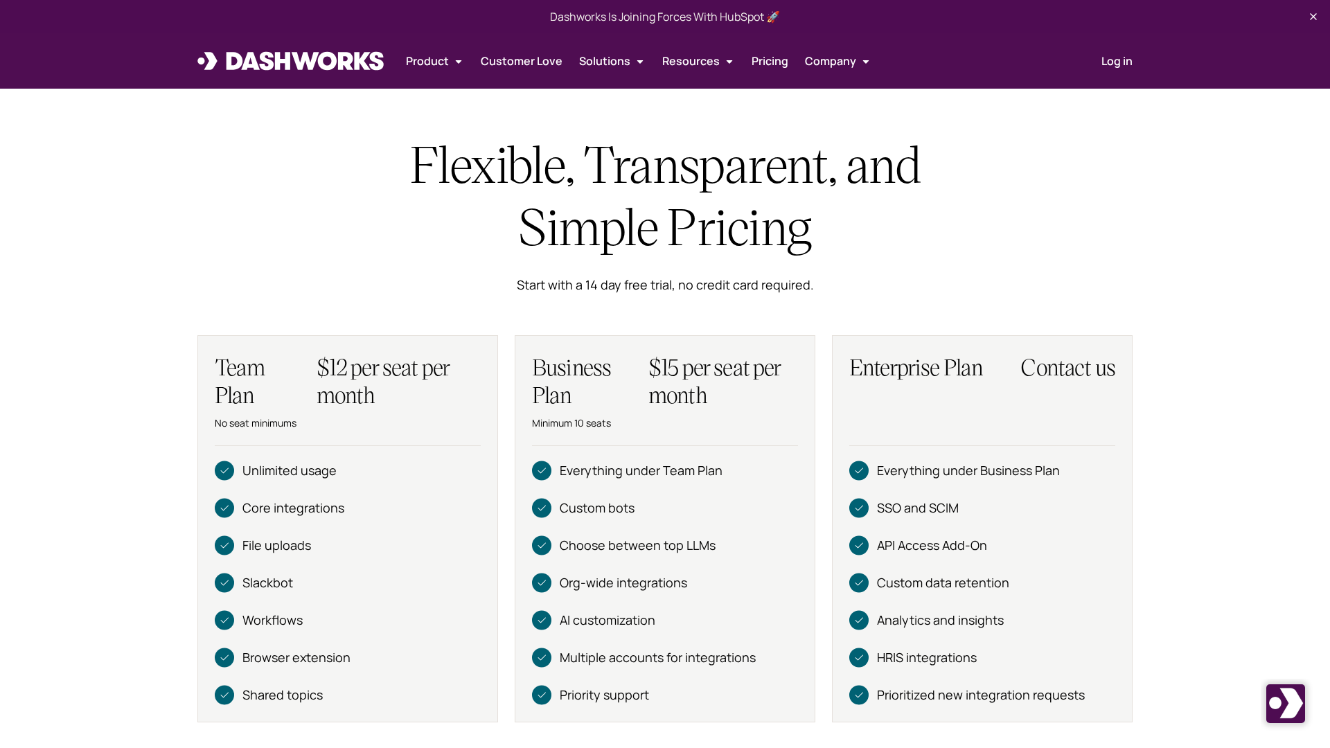 Team-focused plan with advanced AI features, org-wide integrations and customization. Minimum 10 seats.