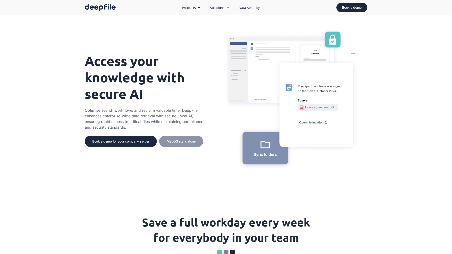 DeepFile runs language models locally on servers or devices to keep all processing and data within customer infrastructure.