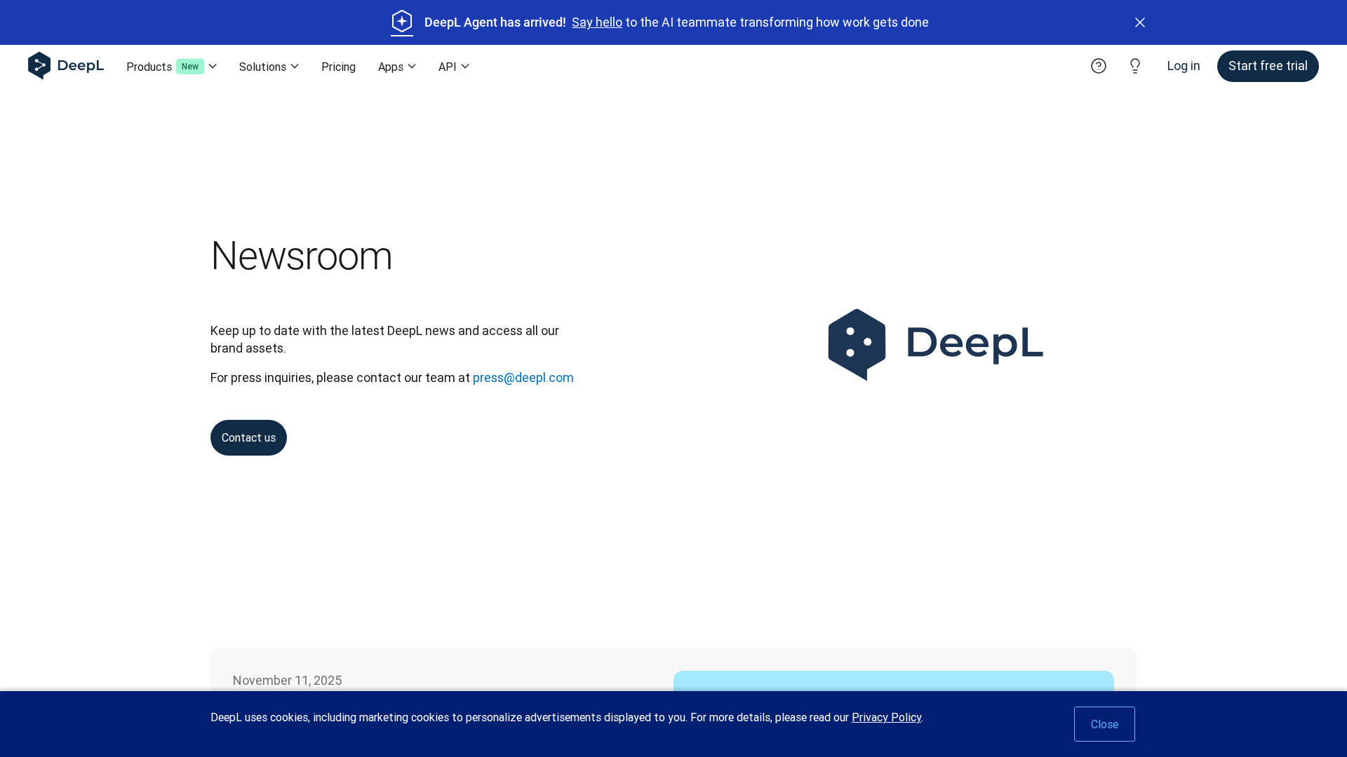 Official DeepL press page with news updates, brand assets, and a comprehensive media kit for editorial use.