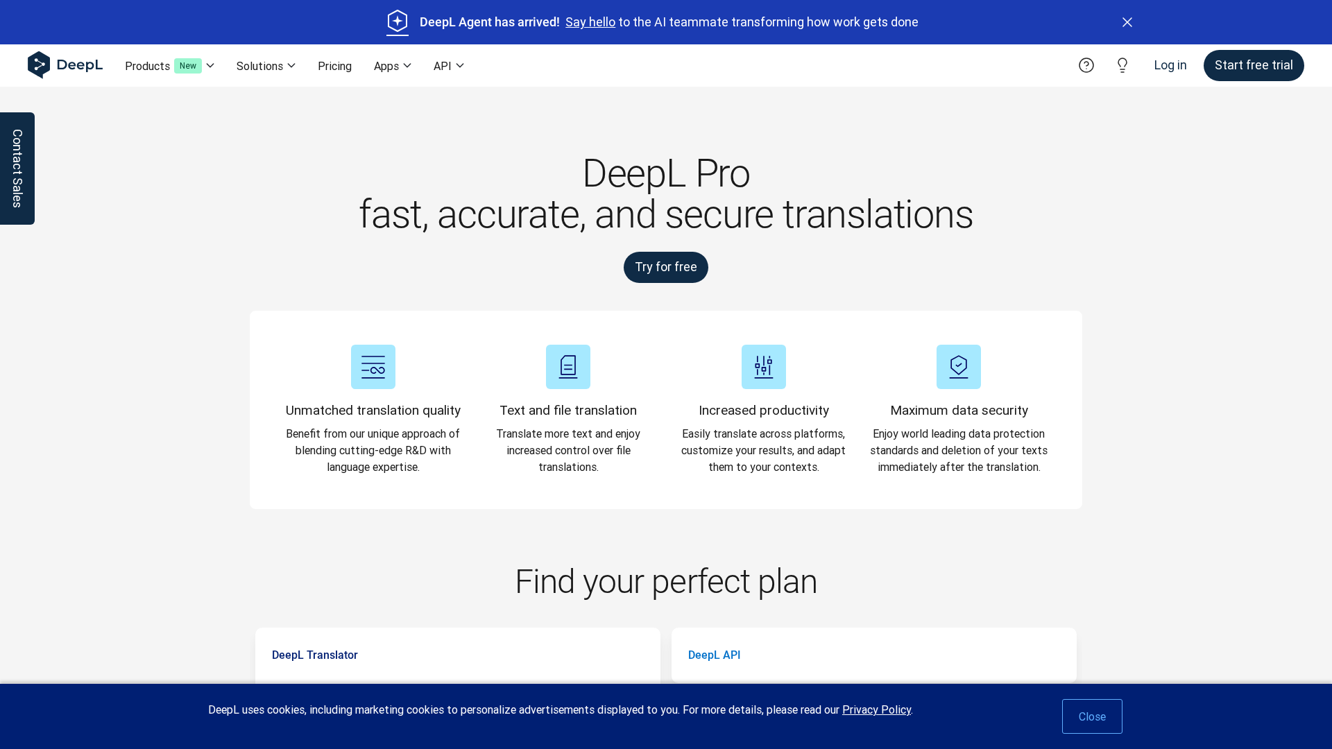DeepL highlights secure AI automation, real-time translation, writing enhancement, and multilingual product capabilities.