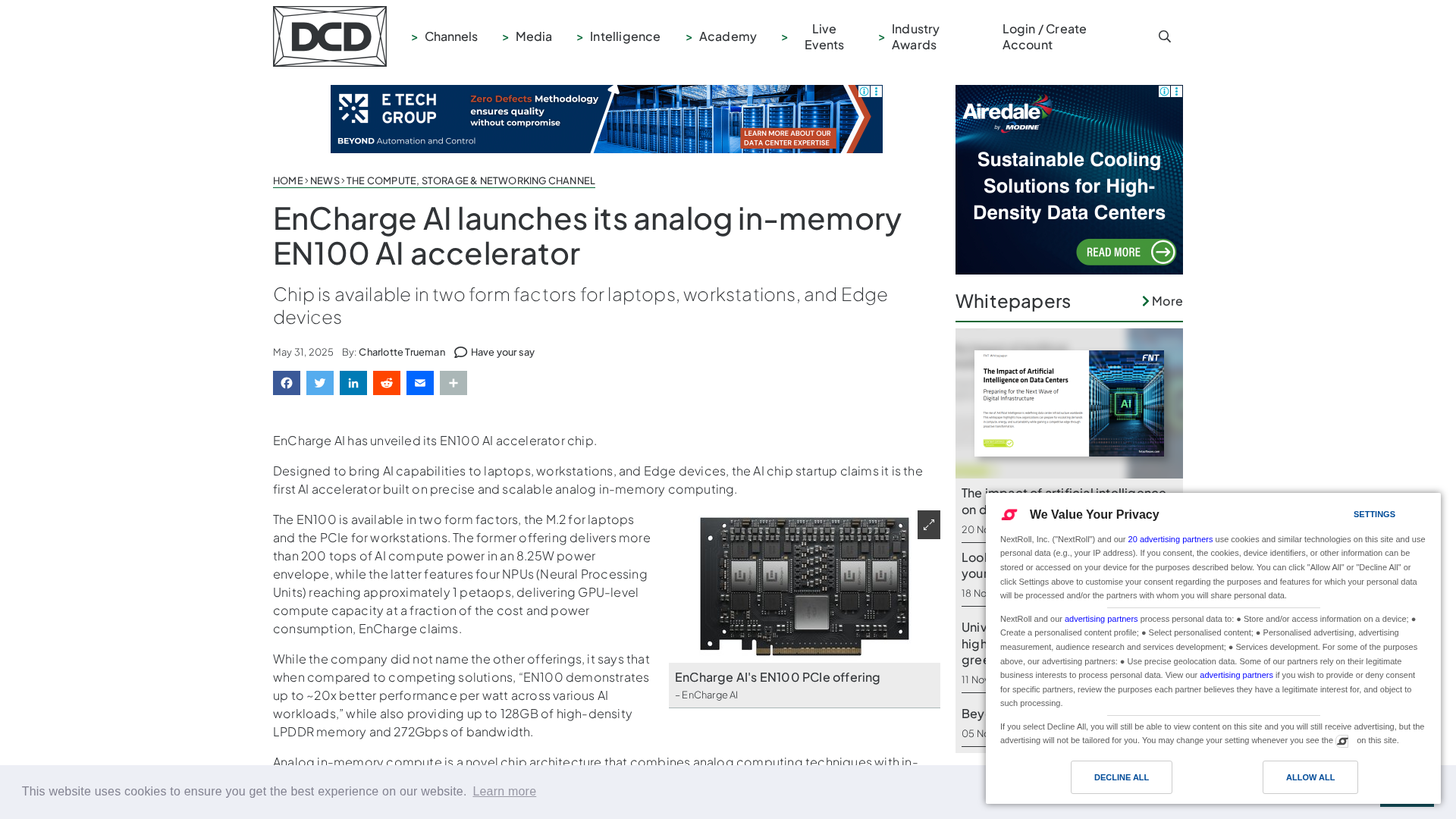EnCharge AI debuts the EN100 analog in-memory AI accelerator for laptops, workstations and edge devices, promising high efficiency and on-device AI inference.