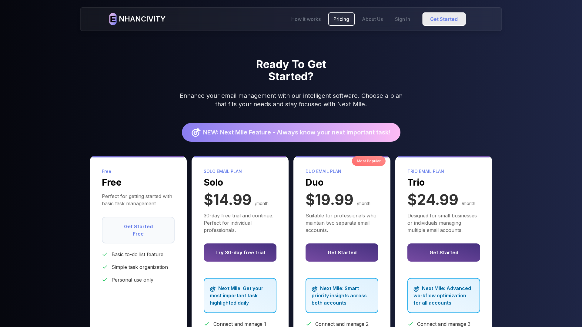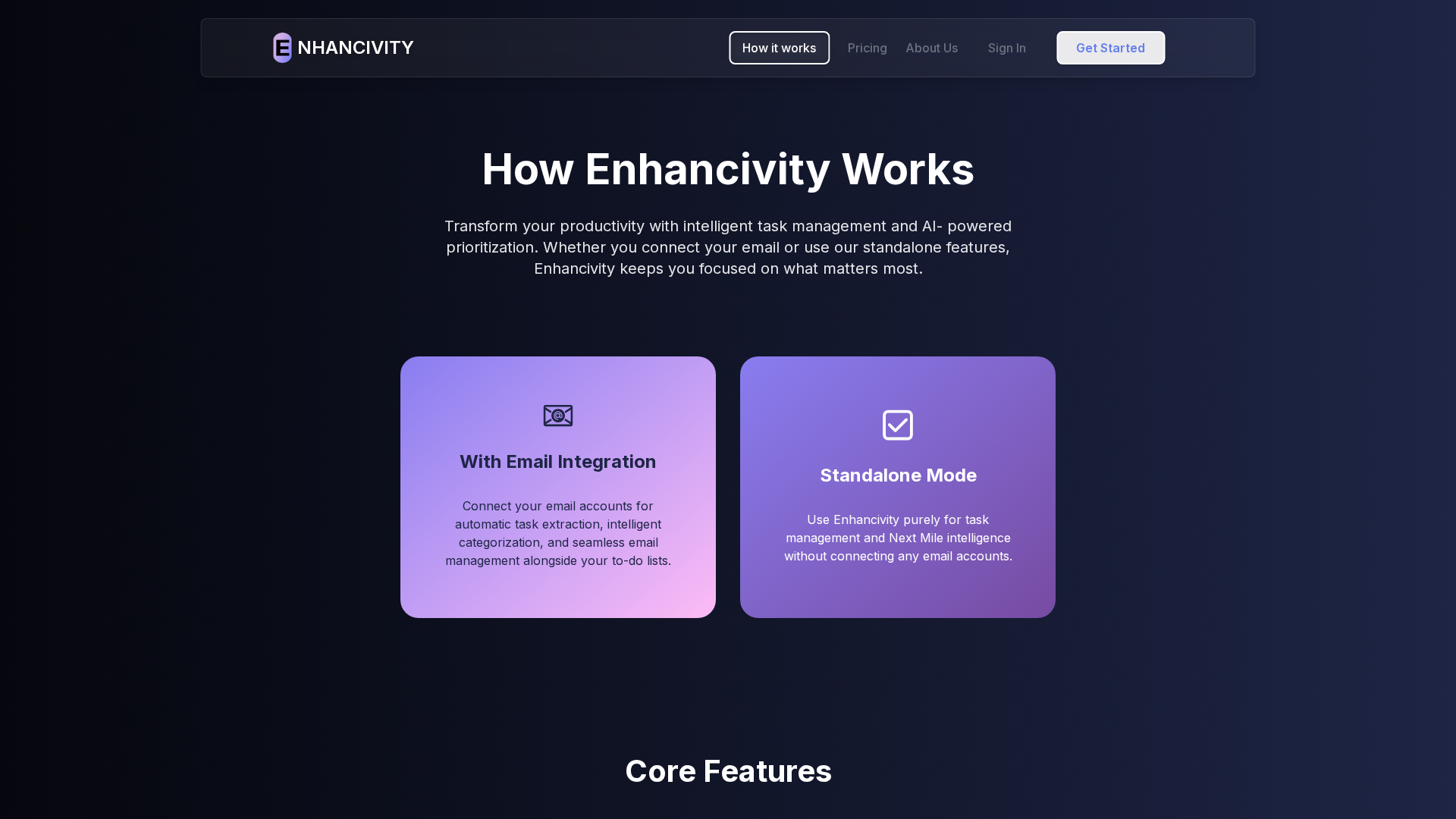 Discover Enhancivity's AI-powered task management, email integration, and Next Mile prioritization.