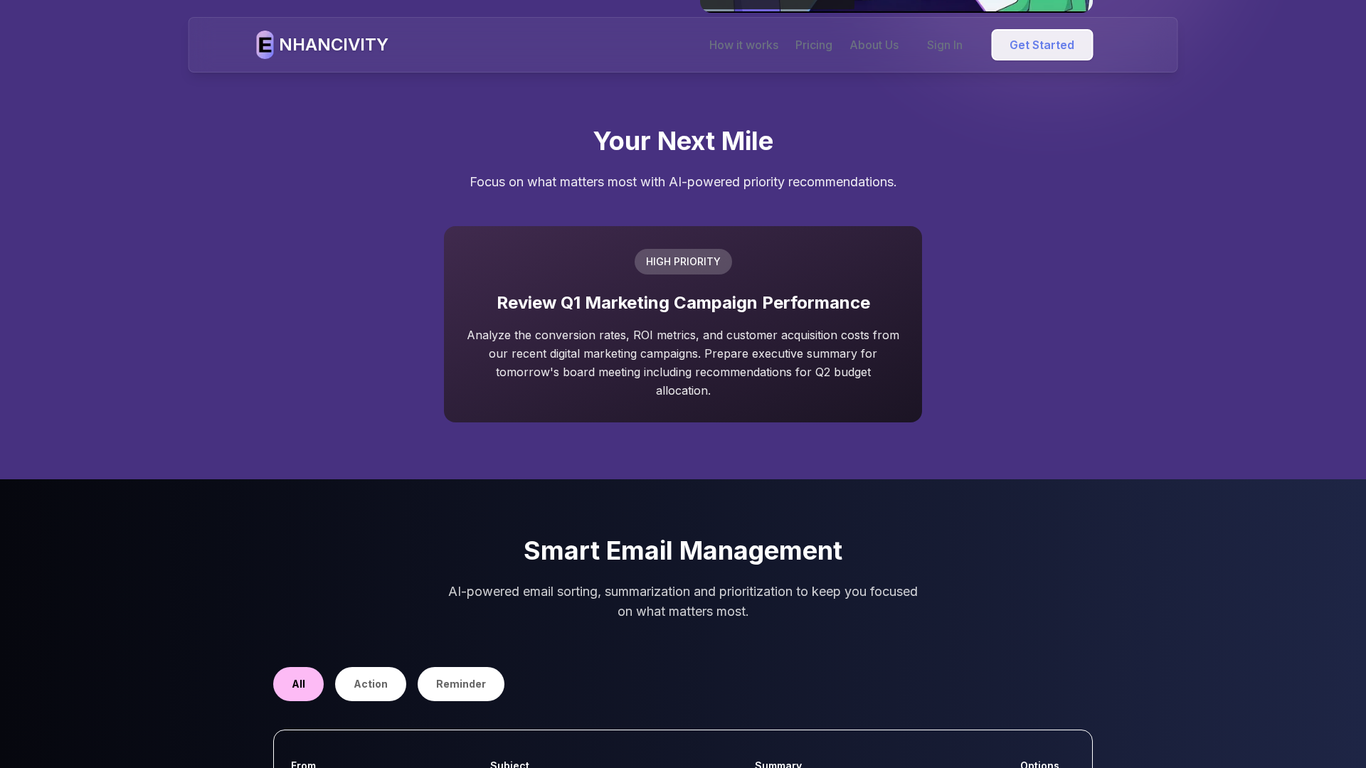 Enhancivity is an AI-driven productivity platform that combines intelligent email triage with automated task management to reduce decision fatigue and surface the single most important action to take next. The service optionally connects to Google Workspace or Microsoft email accounts to extract actionable items, generate concise summaries, and automatically create prioritized to‑do items. Its flagship "Next Mile" intelligence analyzes deadlines, patterns, and context to rank tasks and recommend the next high-impact step. Users can customize behavior with natural-language prompts and enable advanced automation rules to fit individual workflows. Enhancivity emphasizes a privacy-first architecture: email content is processed transiently (read-only via OAuth) and summaries are stored encrypted; raw email content is not retained for training purposes. The product targets professionals and small teams who need to manage multiple inboxes and streamline execution.