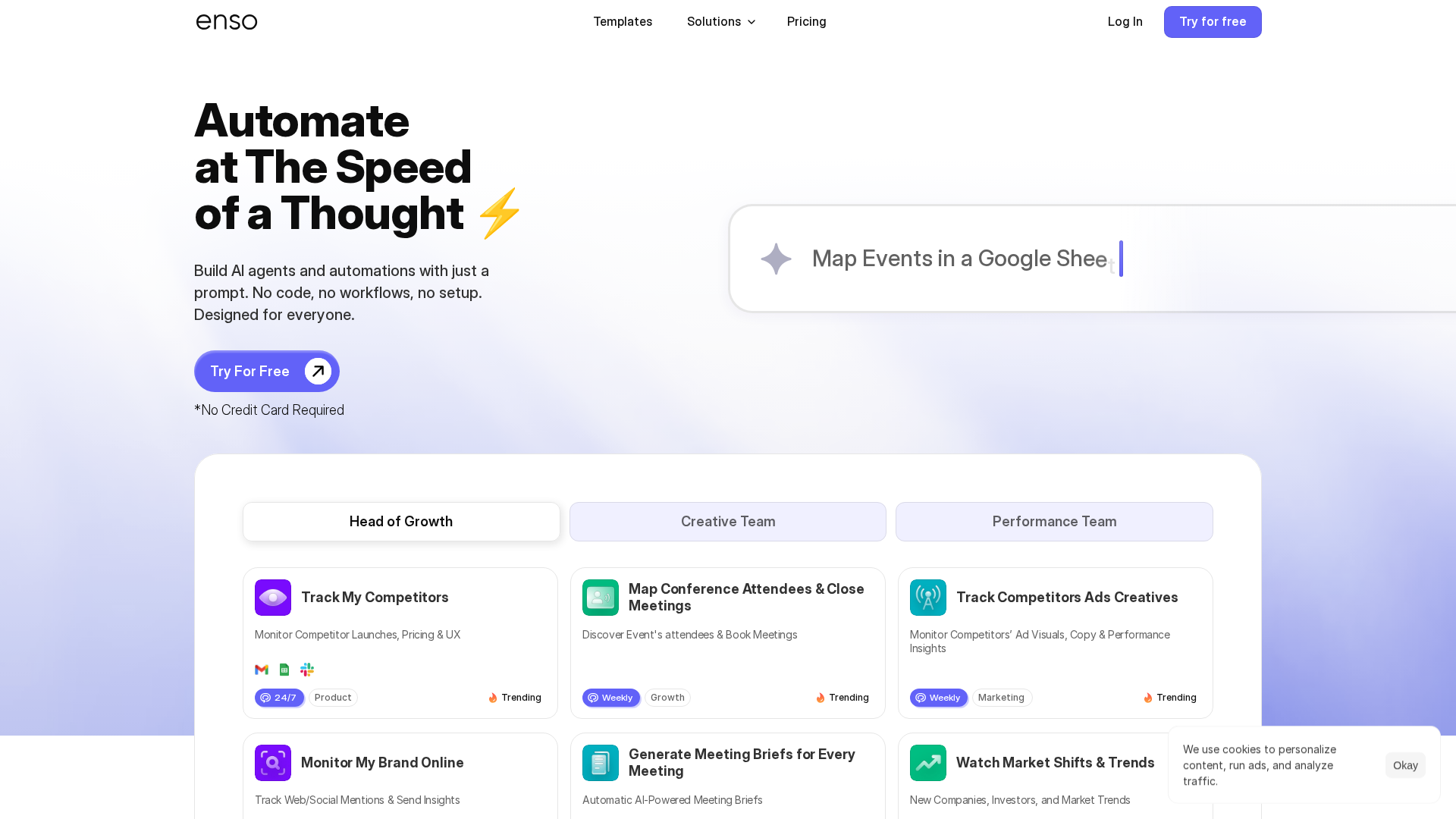 No-code AI automations from prompts to speed growth, monitor competitors, and generate content.