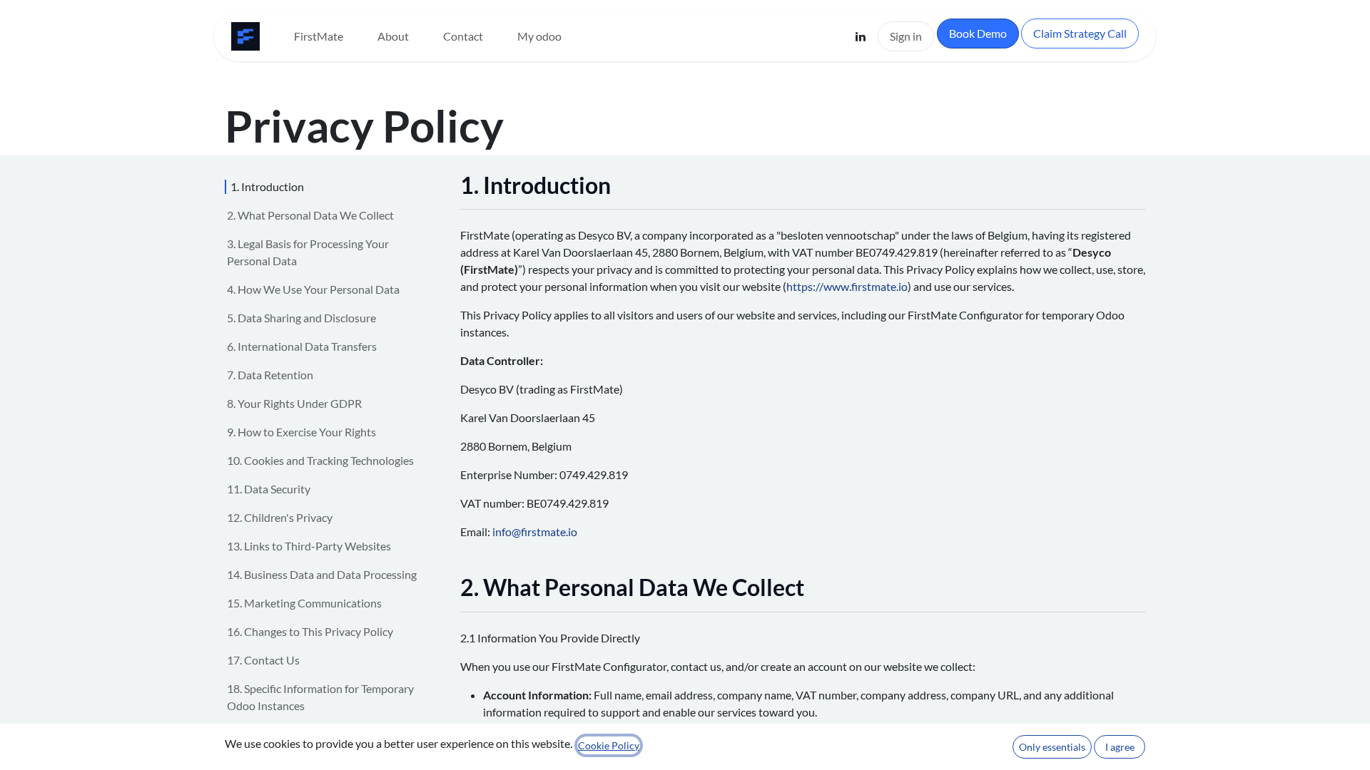 FirstMate is a tech-enabled Odoo consultancy that blends AI agents with senior human architects to deliver fast Odoo implementations, migrations, and RevOps work. They position Odoo as the unified system of record and emphasize rapid, AI-accelerated deployments plus ongoing optimization by experts. The offering includes Rapid Onboarding & Migration (AI agents plus Senior Architects) and RevOps & Growth modules to centralize data and turn it into revenue insights. The company provides a QuickStart configurator to provision temporary Odoo workspaces (typically a 14-day evaluation window) and invites users to book demos or strategy calls. The platform is hosted on Microsoft Azure, with Desyco BV named as data controller; privacy policy describes GDPR-compliant data handling, retention schedules, and DPA availability. Pricing details are not published on the pricing page (404). The QuickStart workspace can be extended by request, and a DPA should be obtained before contracting. The content also notes leadership Morane and Jochen and a footprint across Mechelen, Amsterdam, and other cities, with Bornem address Karel Van Doorslaerlaan 45.