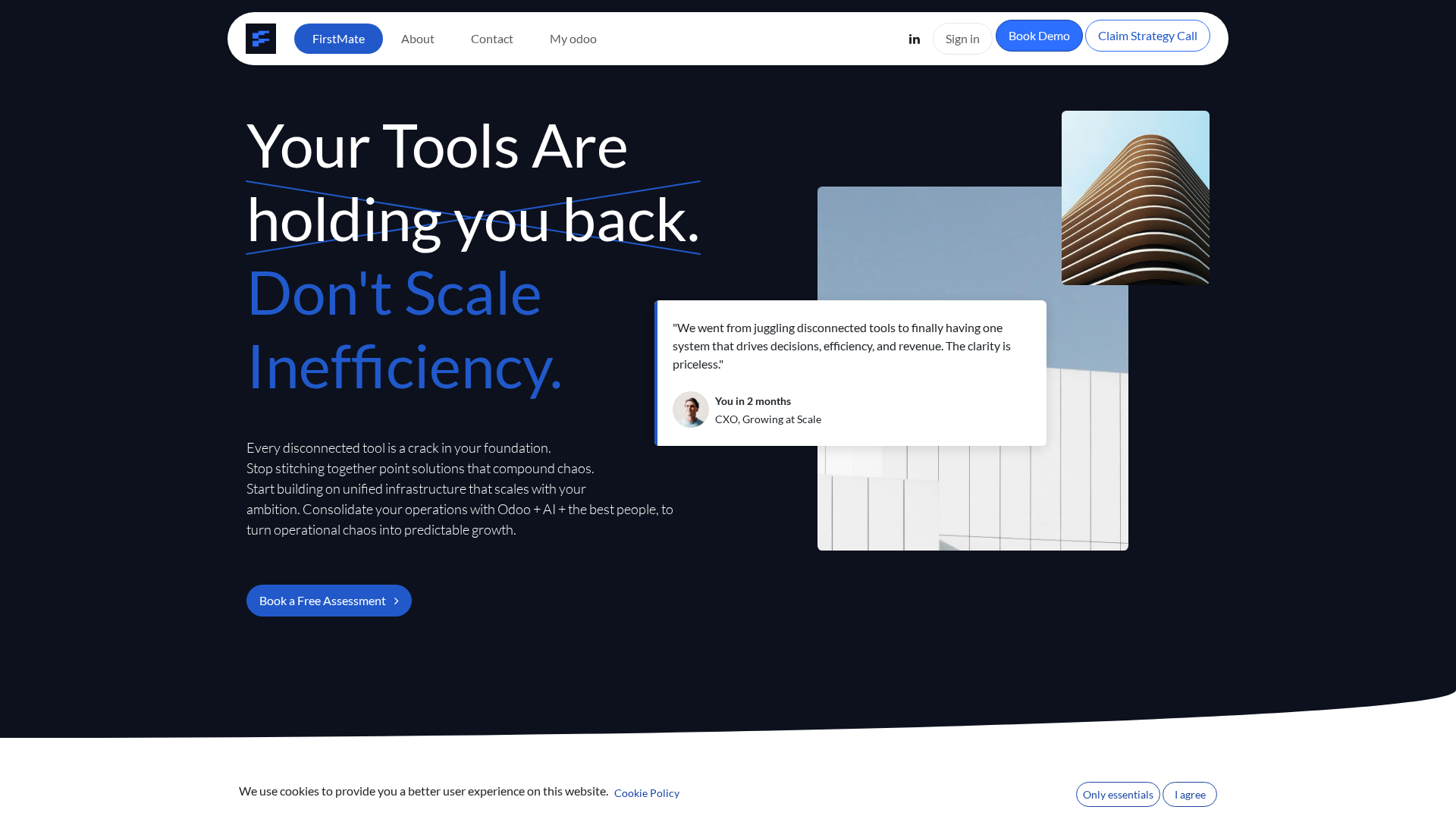 Promotes unifying fragmented tools into a single AI-powered Odoo platform for scalable growth.