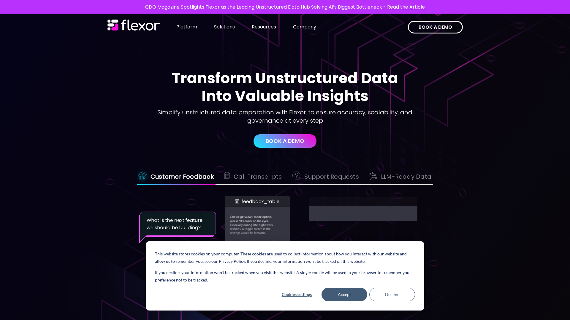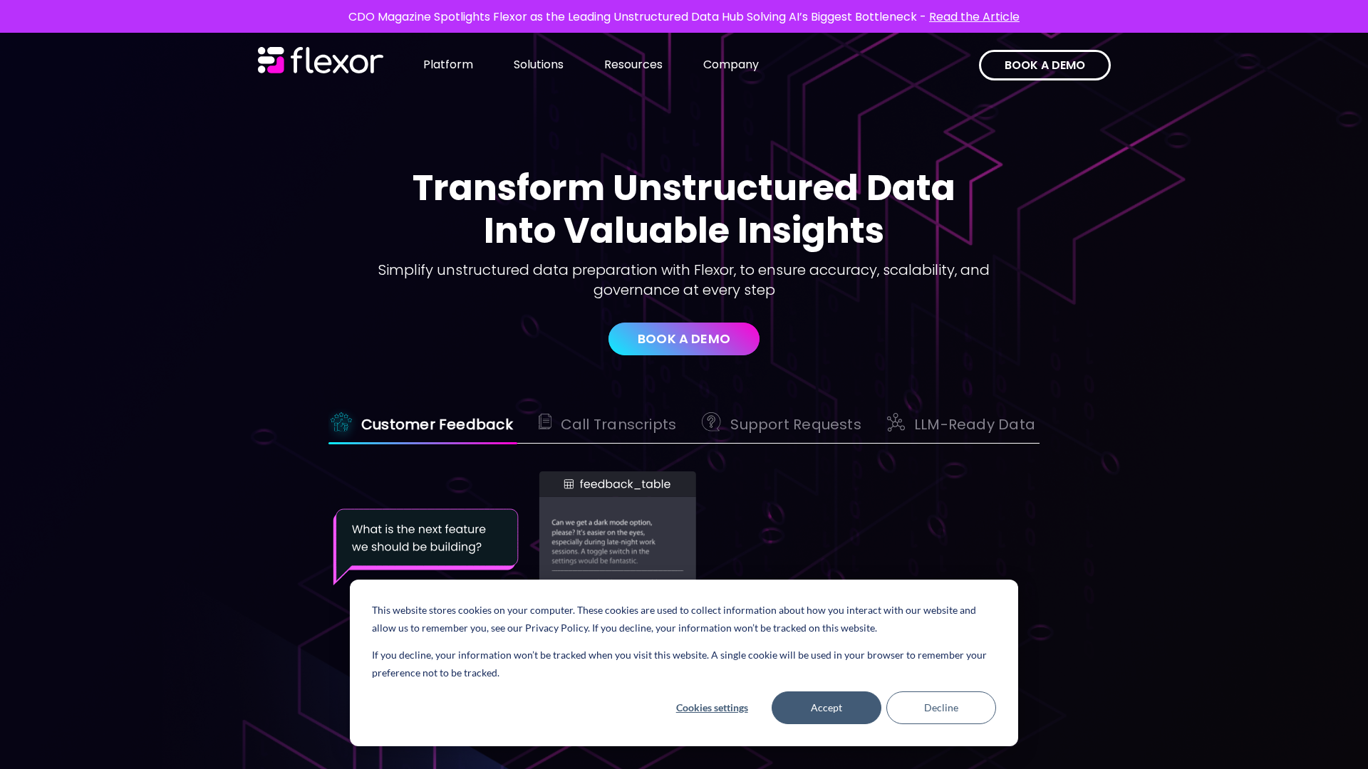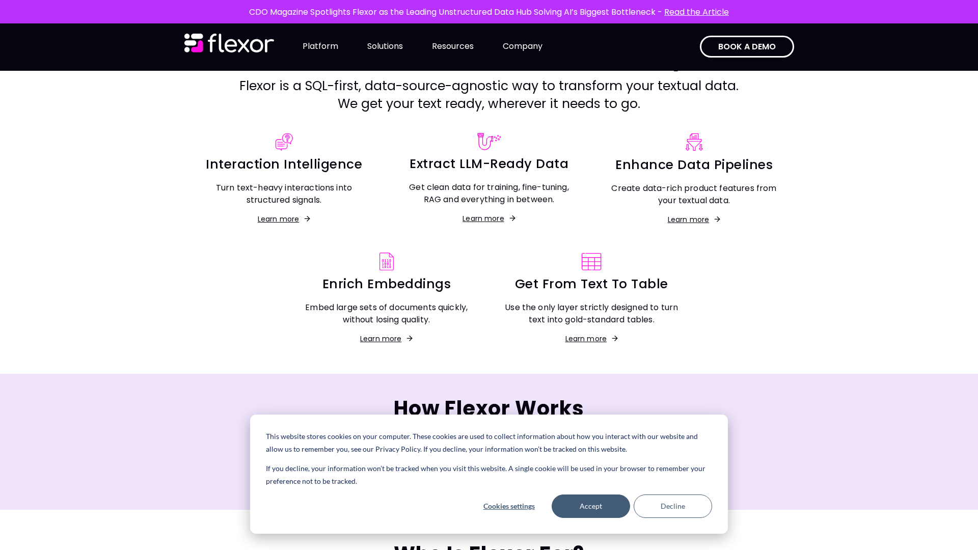 Flexor (Flexor Technologies Ltd.) provides a SQL-first unstructured data transformation layer that turns free text into queryable structured data, enriched embeddings, and classification pipelines for BI, RAG and automation. Key capabilities include a SQL-first interface for building text extraction, classification, and embedding pipelines within SQL-level workflows; a four-step workflow (extract from many sources, transform to structured data for BI/analytics, build embeddings & classification pipelines for Retrieval-Augmented Generation, and create text-based data pipelines/automations); production-scale embeddings designed to fit common vector DBs (mentions Pinecone, Weaviate, Milvus, Qdrant); integrations with vector databases, data warehouses, dbt and other modern data stack components; and marketing claims around scalability (processing millions of documents, "rich embeddings in under an hour", and "up and running in ~24 hours after demo"). Security & privacy notes (as presented on the public site): Flexor emphasizes minimal data movement, enterprise-grade protections, processing designed for secure/air-gapped environments, purge of identifying traces after transformation while retaining non-intrusive logs. The site shows trust/compliance icons (SOC 2, ISO, GDPR/HIPAA indicators) and a detailed privacy policy (last updated Feb 20, 2025) that lists categories of data collected, purposes of processing, retention, rights, and opt-out/contact procedures ([email protected]). The public site is marketing-focused and does not publish SOC 2/ISO reports, DPAs, or detailed SLA/benchmarks — these are recommended to request from sales for enterprise due diligence. Pricing & trial status (public site): No public pricing plans or free-trial details were found. Marketing copy references a "tiered and predictable pricing model" and contrasts this with Snowflake Cortex's pay-as-you-go approach, but concrete public prices or plan tiers are not published. Recommendation: contact sales / book a demo to obtain pricing, trial, and contractual information. Company signals & coverage: The privacy policy/footer lists the company as Flexor Technologies Ltd. The site and external coverage include CDO Magazine coverage naming Flexor a product to watch (2024) and a LinkedIn company page; LinkedIn snippets reference investor/backing mentions (e.g., Dell Technologies and TLVP appear in snippets). For founding-year, full founder names, investor terms, or funding amounts, consult primary sources (company, filings, or investor disclosures) — the scraped public pages do not provide verified, complete founding-year or funding details. Pages scraped: Home, About, Product, Enriched embeddings, Integrations, Interaction intelligence, Data engineers, Data pipelines, Security, Privacy policy, Flexor vs Cortex (list of URLs maintained separately). Caveats & next steps: The public site is marketing-forward and omits detailed technical and contractual artifacts (SOC 2/ISO reports, DPA, performance benchmarks, full connector lists, SLA/uptime terms, sample contracts, or detailed onboarding flow). Recommended next steps are: request a sales/technical demo, ask for SOC 2/ISO evidence and DPA, request architecture and performance documentation, and ask for a pricing/trial offer.